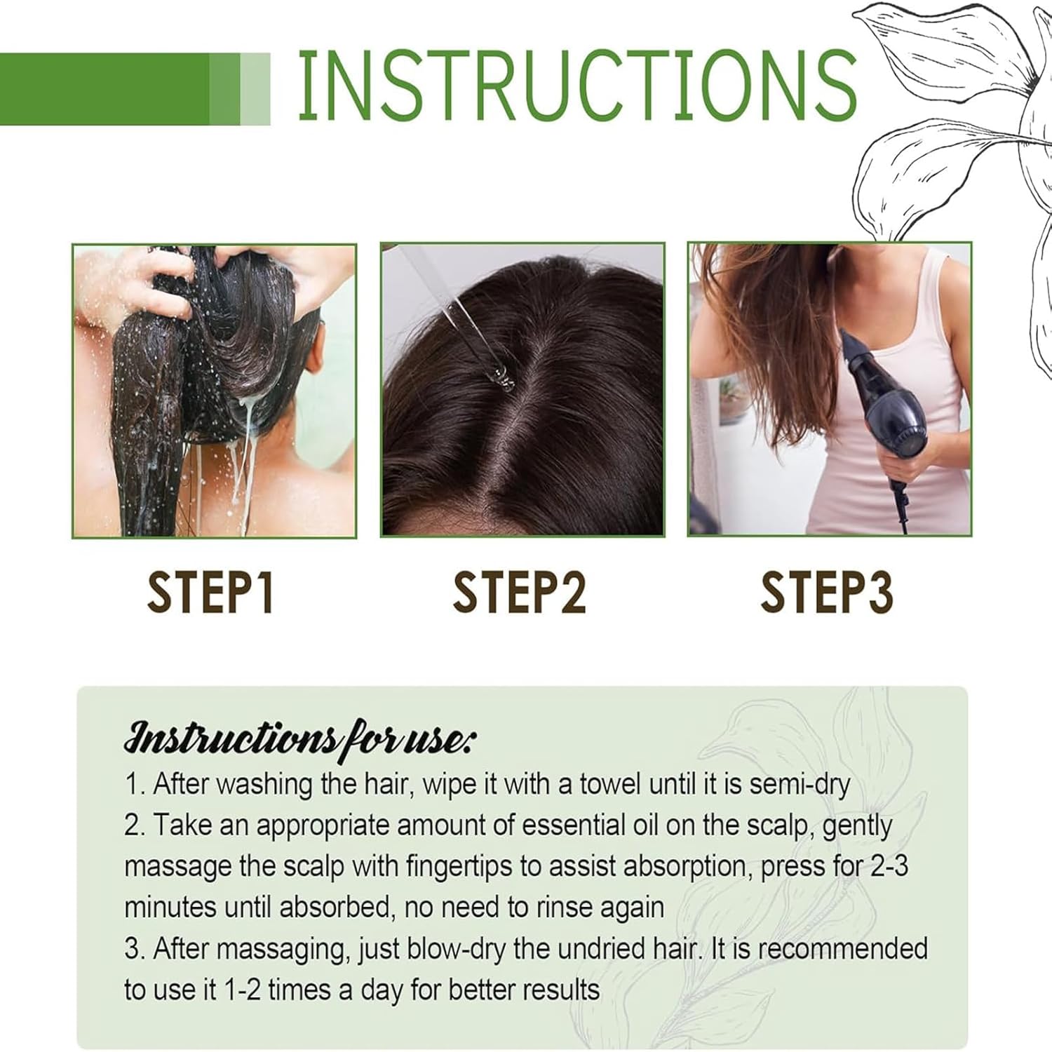 【Easy to Use】Hair Growth Oil just drop it directly on the hair root and massage for full absorption, and continuous application will achieve visible effect to leave your hair shiny, silky and soft more easily.