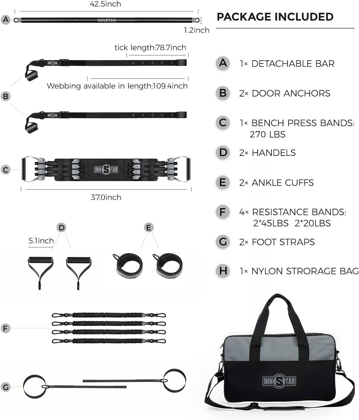INNSTAR Upgraded Portable Home Gym 5.0, Adjustable Bench Press Resistance Bands,Full Body Workout Strength Training Equipment with Detachable Fitness Bar, Handles,for Home,Travel,Gym