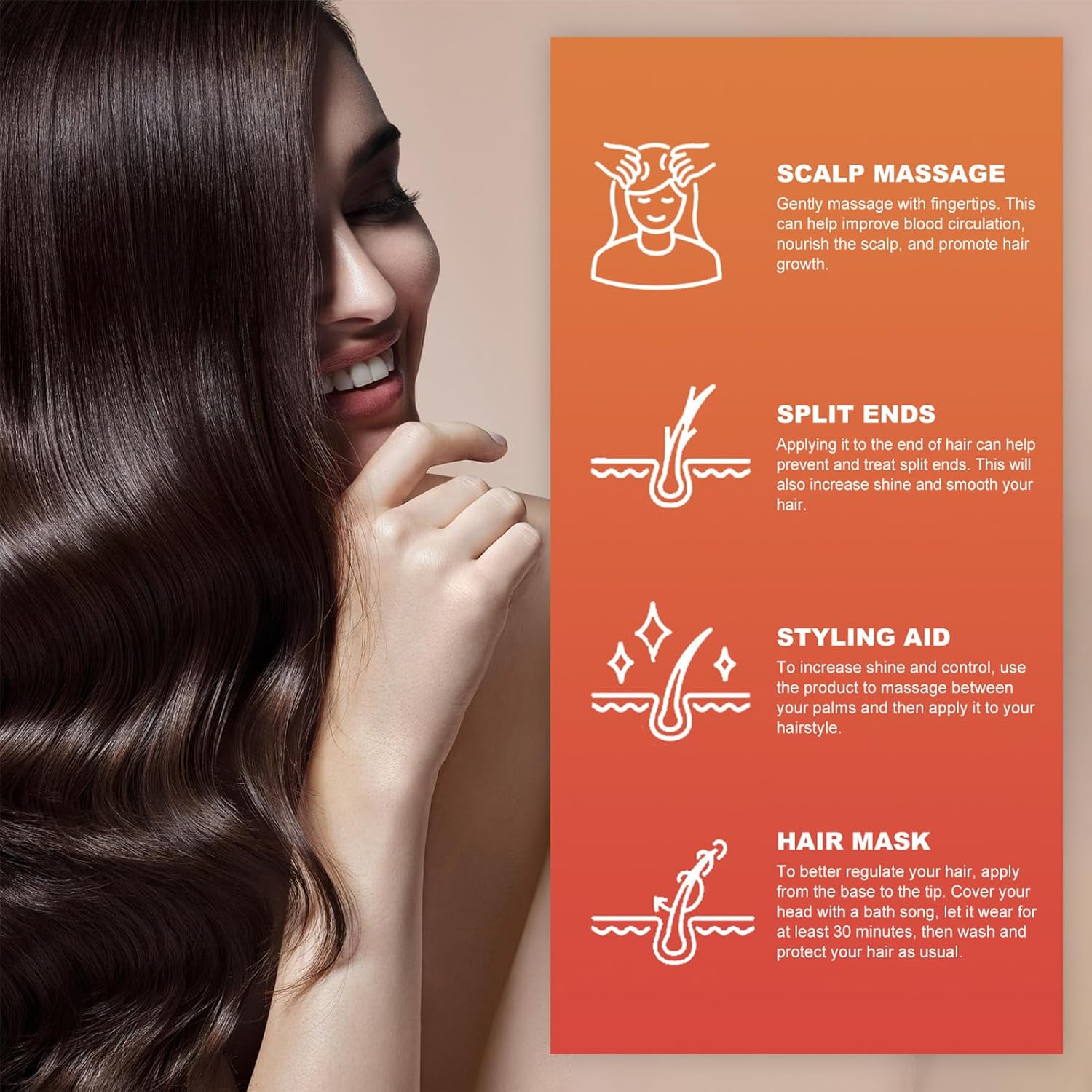 Promote hair growth: reduce hair breakage, increase shine, and promote hair growth.