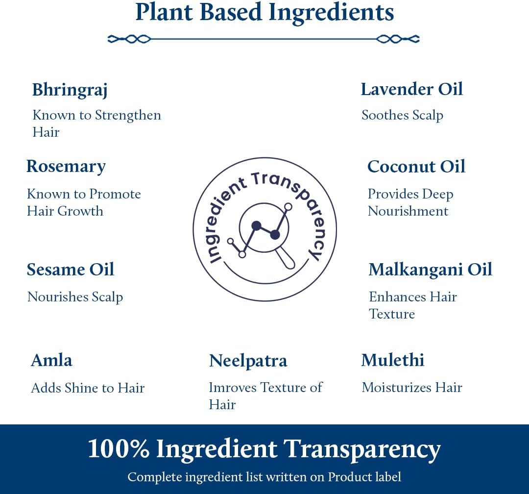 100% NATURAL OIL. Ayurvedic Formulation. No Mineral Oil. No Parabens. No Sulfates. No Silicones. No Artificial Color or Fragrance. No Animal Testing