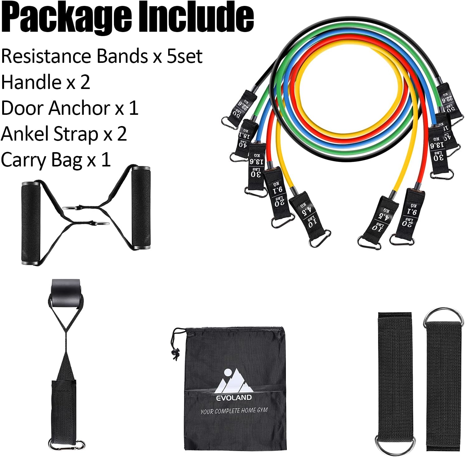 EVOLAND Resistance Bands Set, Exercise Bands for Home Workouts With Carrying Bag, Home Gym Equipment for Full Body Training