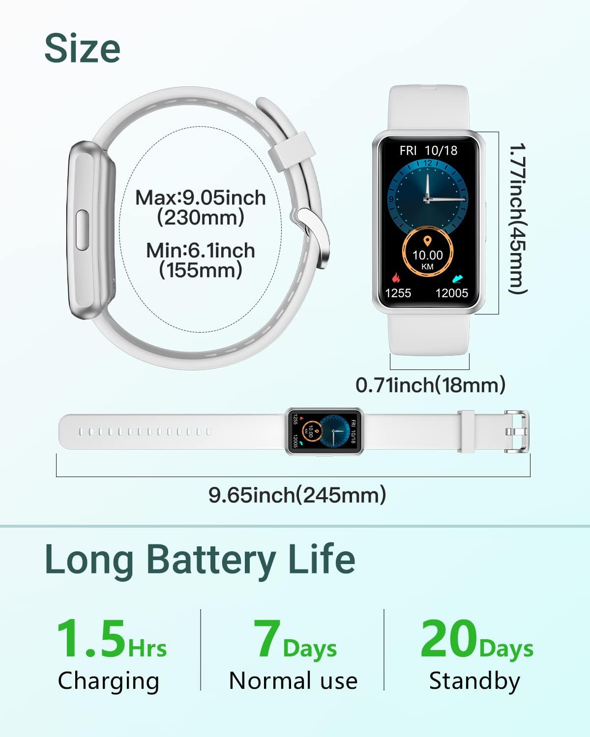 ▶【Comfortable to wear and fashion design】1.47 inch full touch screen makes screen content is more clearly visible. Silica gel materials, environmental protection and non-toxic, feel more comfortable, suitable for the elders and children use.