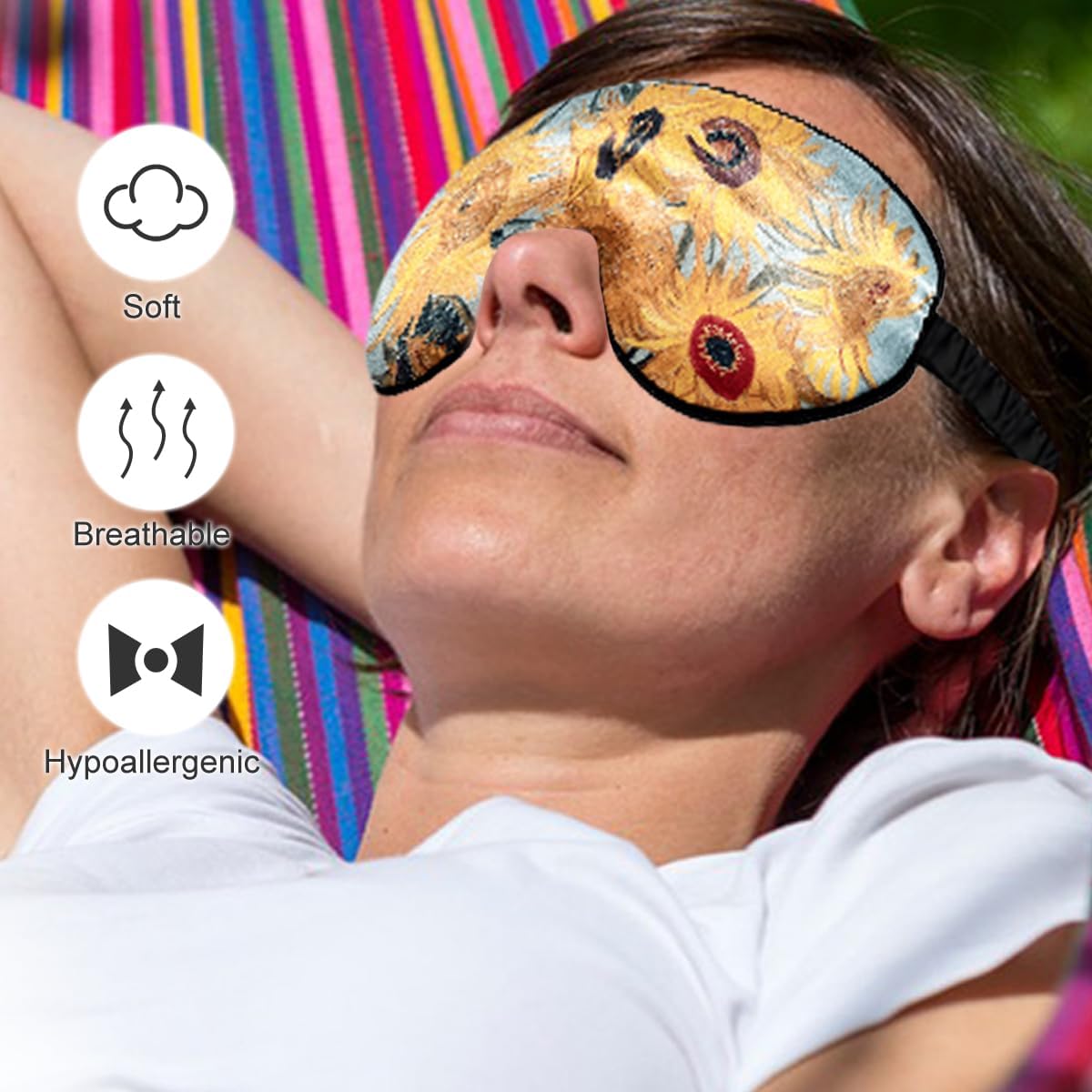 Occasion— Eye mask. This silk eye sleeping mask is perfect for Travel, Home, Flight, Train or anywhere where your sleep is bothered by light. It is also the best gift for family, friends, sisters, and mothers on Christmas, Valentine’s Day, Mother’s Day, or holidays.