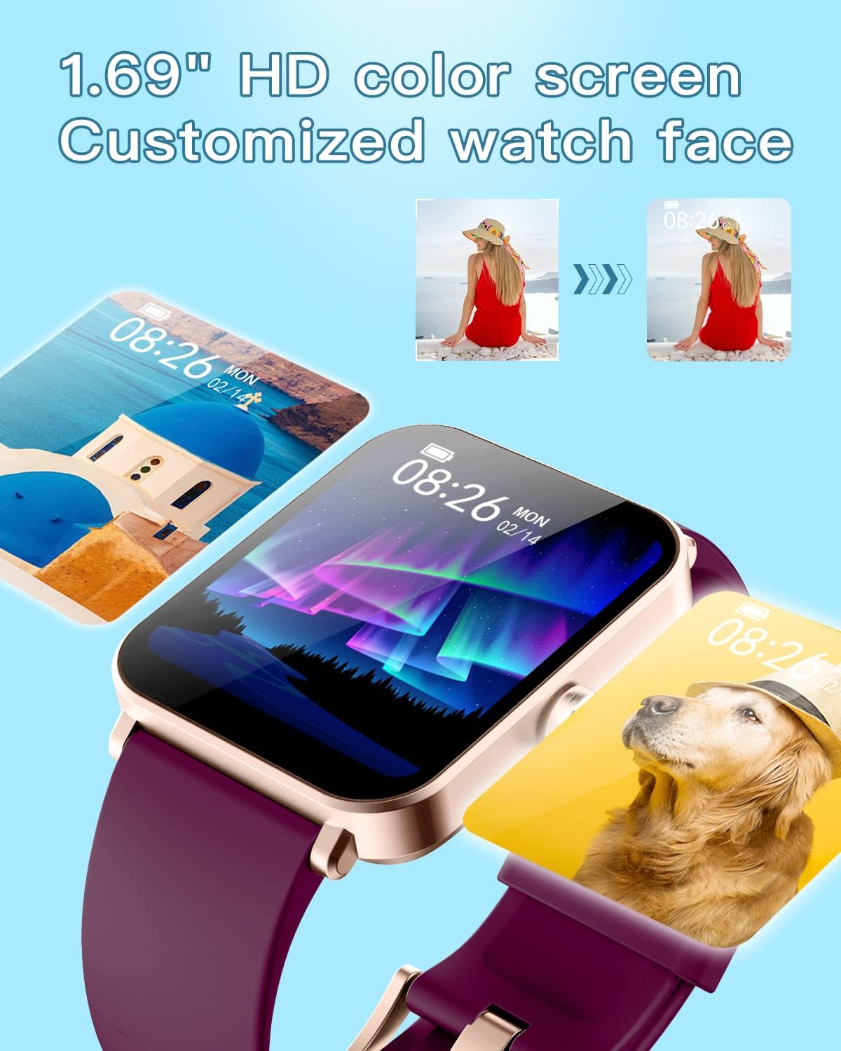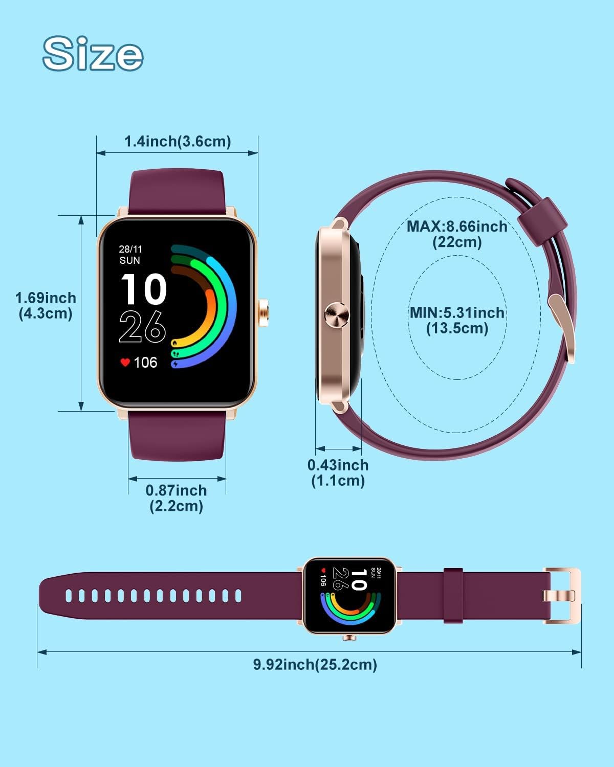【1.69″ Full Touch Screen & Multi-dial】This smart watch has a 1.69 inch TFT high-definition full touch screen, make it easy to view and access information quickly and at a glance. There are a variety of dials that you canchoose your favorite picture in the App (Inxfit) to customize the dial to release your unique personality.
