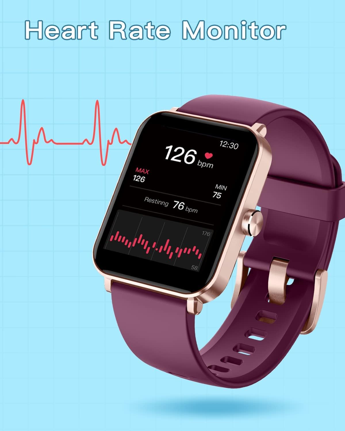 【Heart Rate & Blood Oxygen & Sleep Detection】The fitness watch can accurately monitor your real-time heart rate, sleep quality(Light, Deep, Awake), Blood Oxygen (SpO2) level. It keeps track of your steps, distance and calories burned to help you develop a healthier lifestyle.