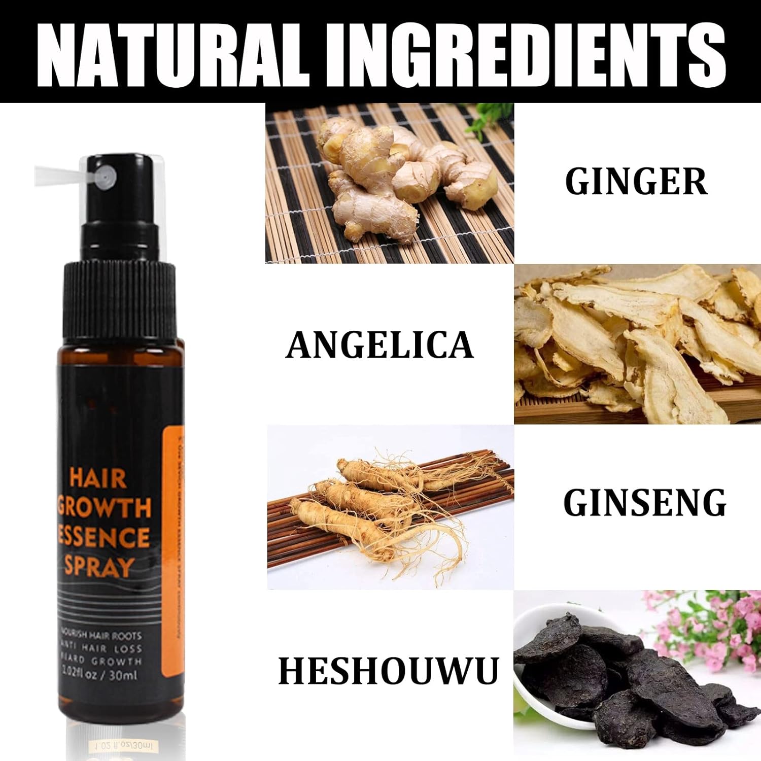 HEALTHY HAIR GROWTH – Powerful plants extracts include Ginger Ginseng and Heshouwu that help banish bald-spots, thinning & shedding, activate thicker and faster regrowth, visibly increase hair density up to 50%.