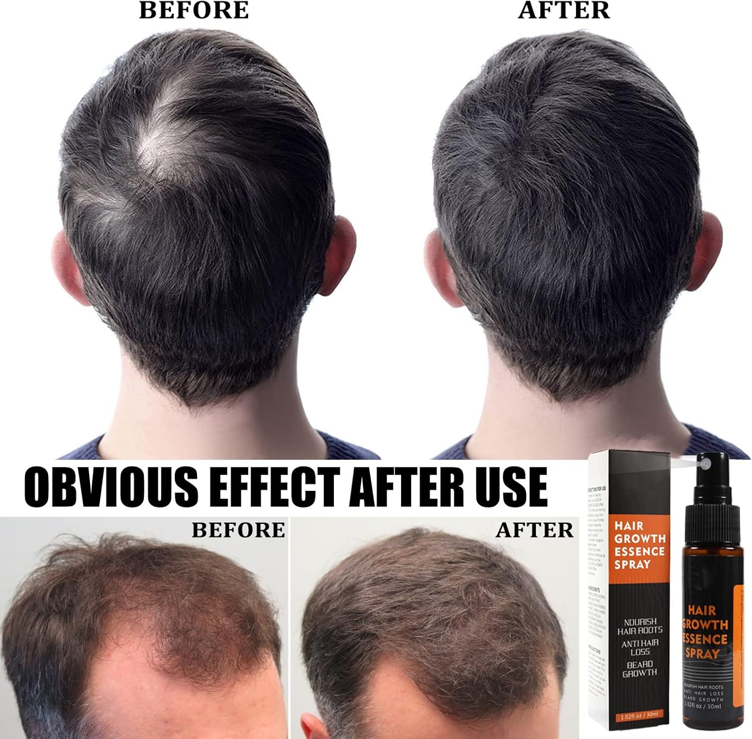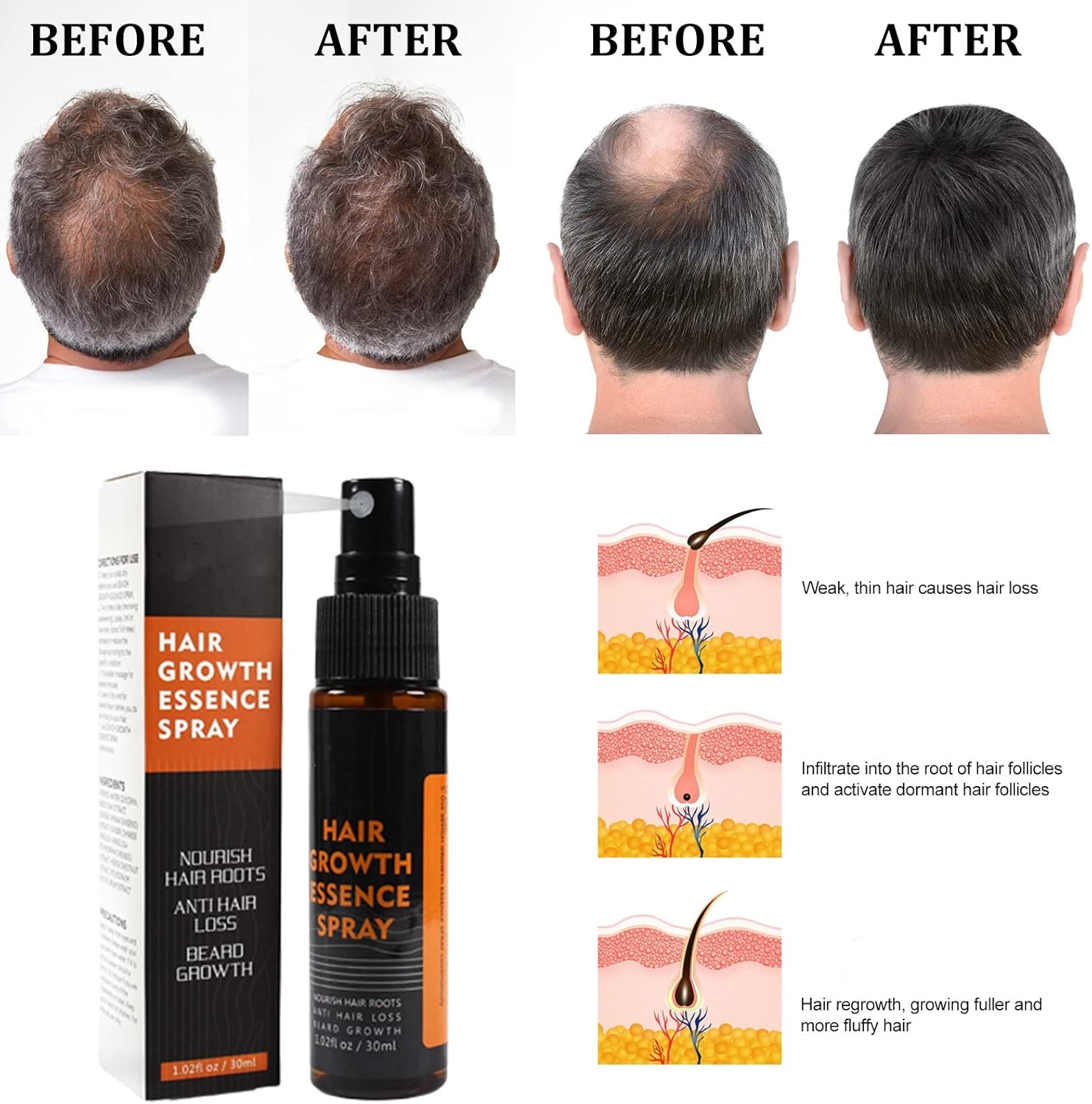 Experience thicker, faster hair regrowth with our Hair Regrowth Spray/Hair Growth Serum. Our formula is targeted to banishing bald spots and thinning hair, while promoting follicular growth. Perfect for both men and women, our Hair Regrowth Serum Formula is specially designed to address balding and thinning crowns, as well as weak, uneven beard growth.