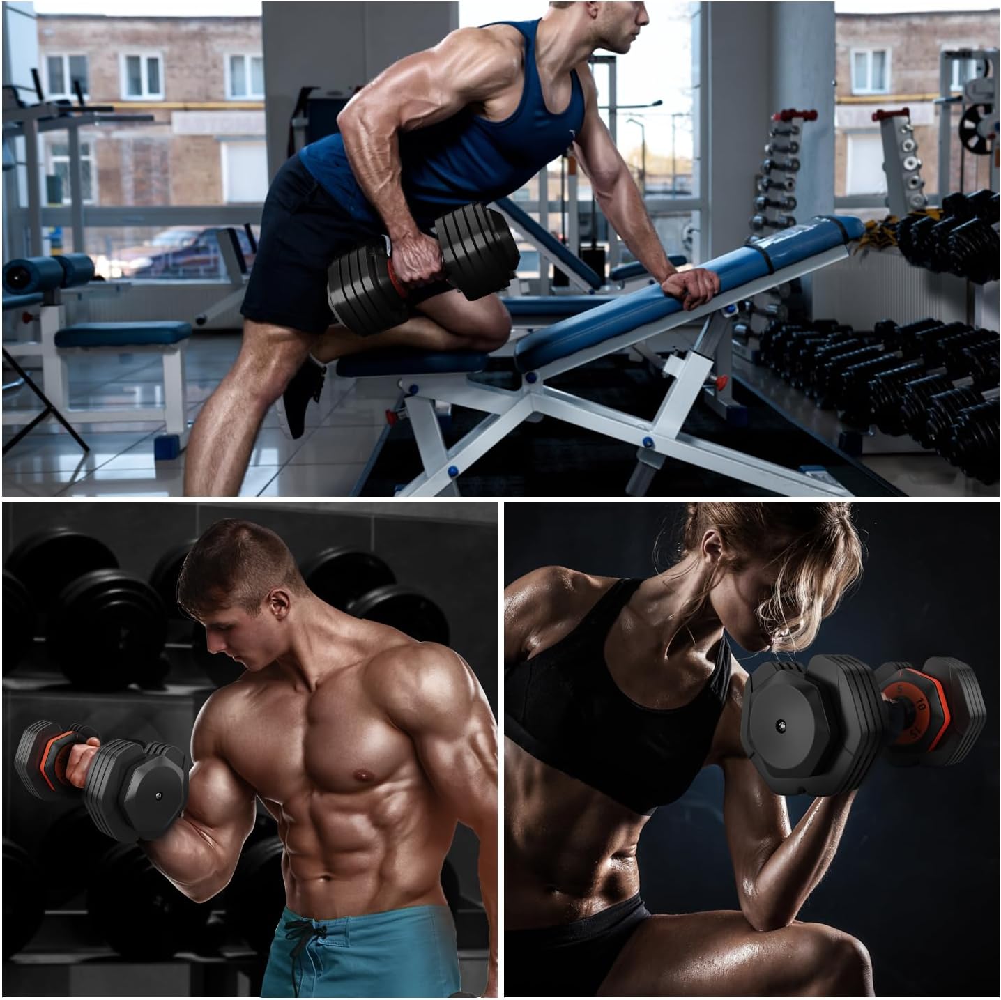【Your Personal Home Fitness Training】WHATAFIT adjustable dumbbell set is designed for full-body workouts, working your arms, chest, back, shoulders, etc. An ideal choice for anyone who wants to build strength, burn fat, and create a shapely body.