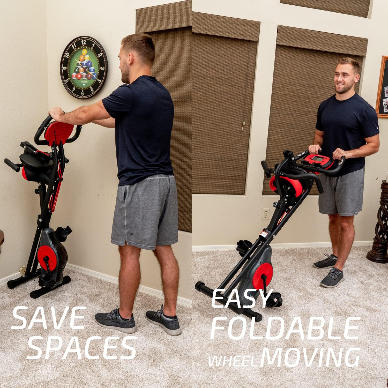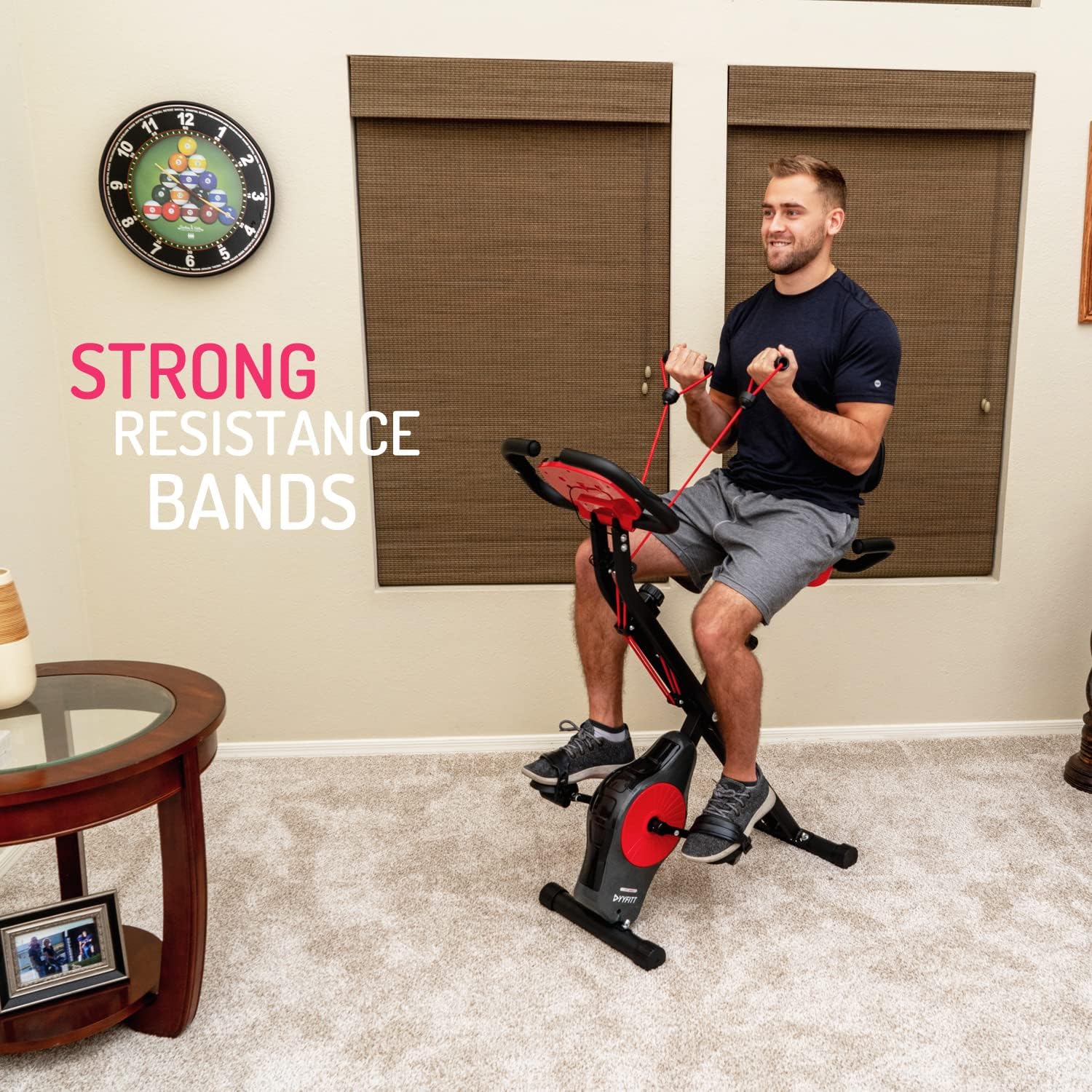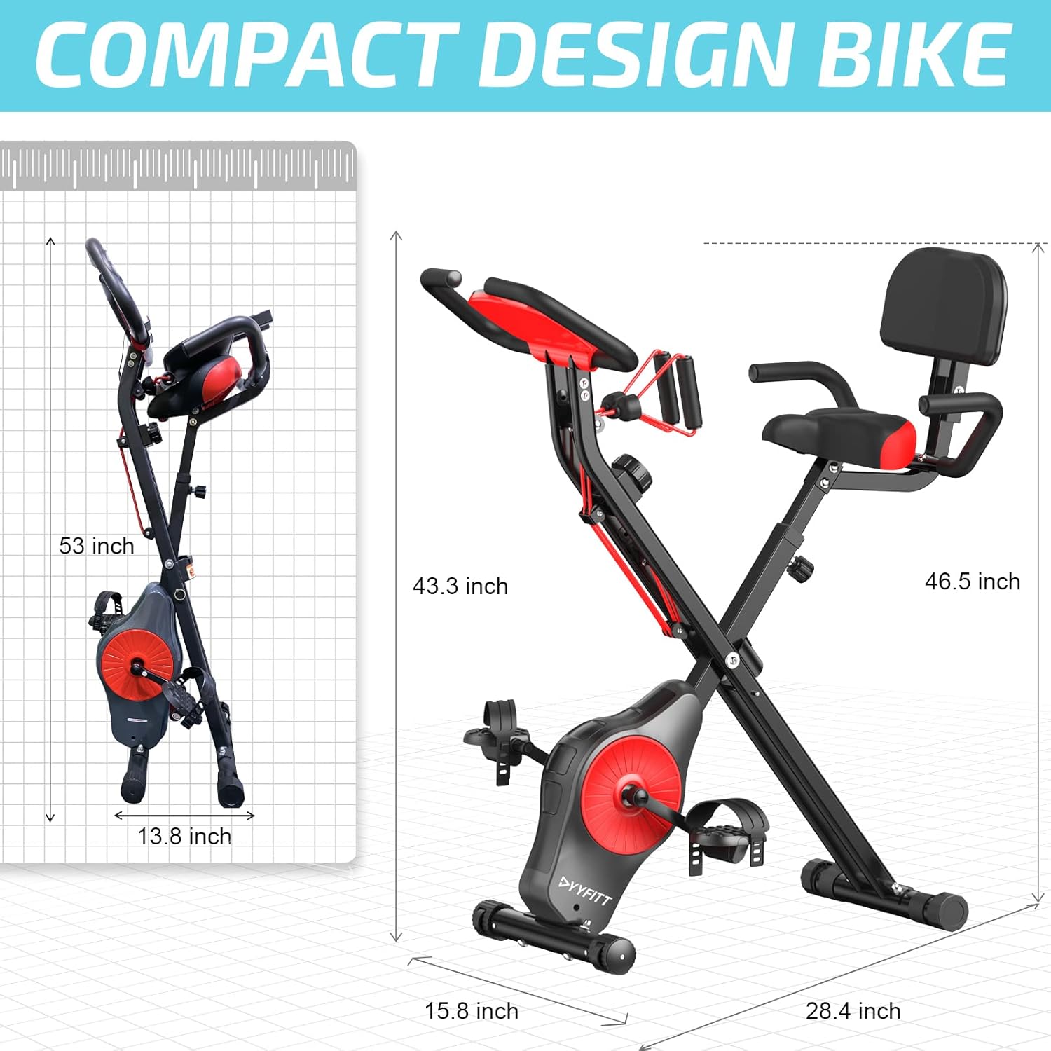 YYFITT Foldable Fitness Exercise Bike with Resistance Bands, 16 Magnetic Resistance Levels with Pulse Sensor, Phone/Tablet Holder with Smooth and Quiet Cycling