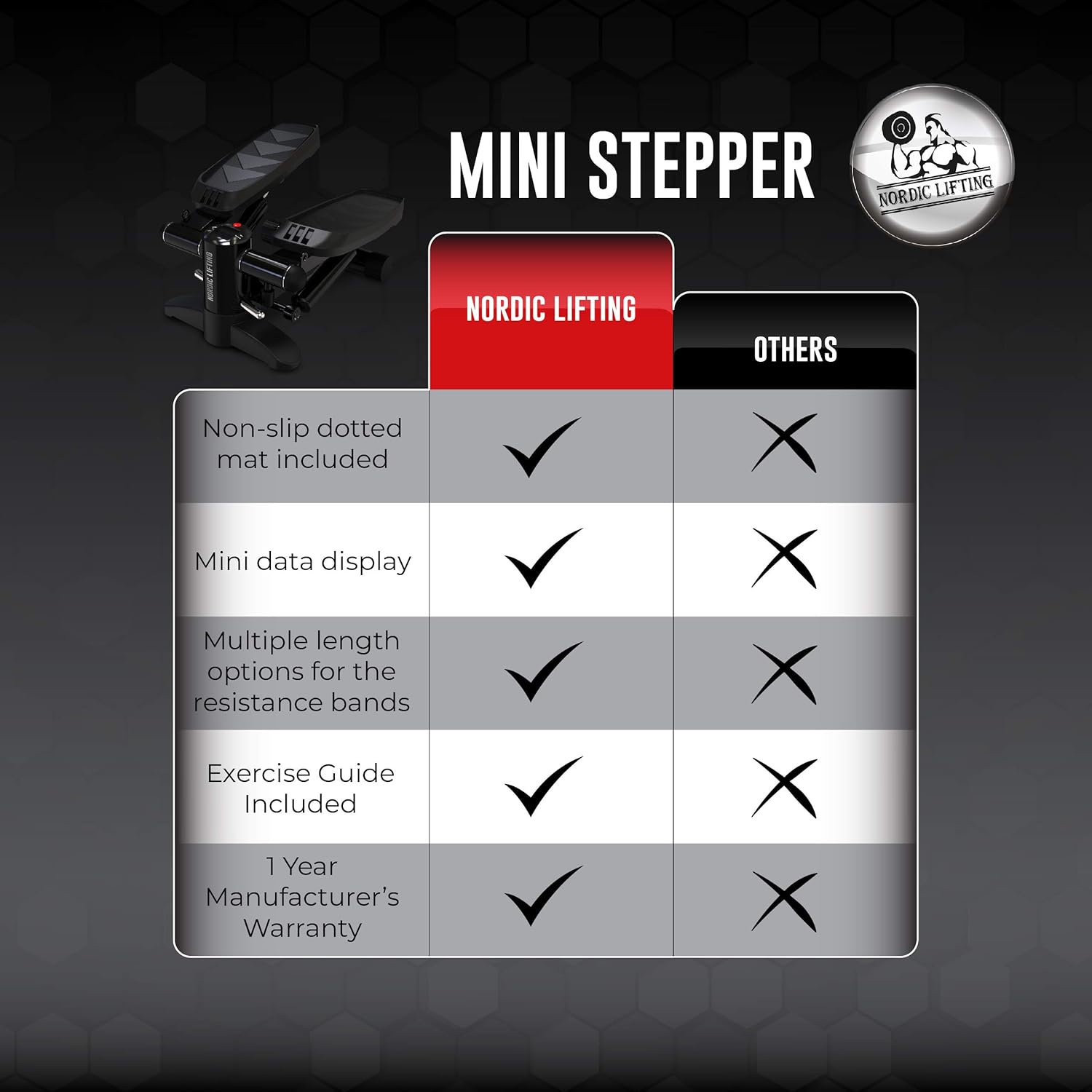 Mini Stepper & Stair Climber Machine – w/Resistance Bands Set – Built in Monitor by Nordic Lifting