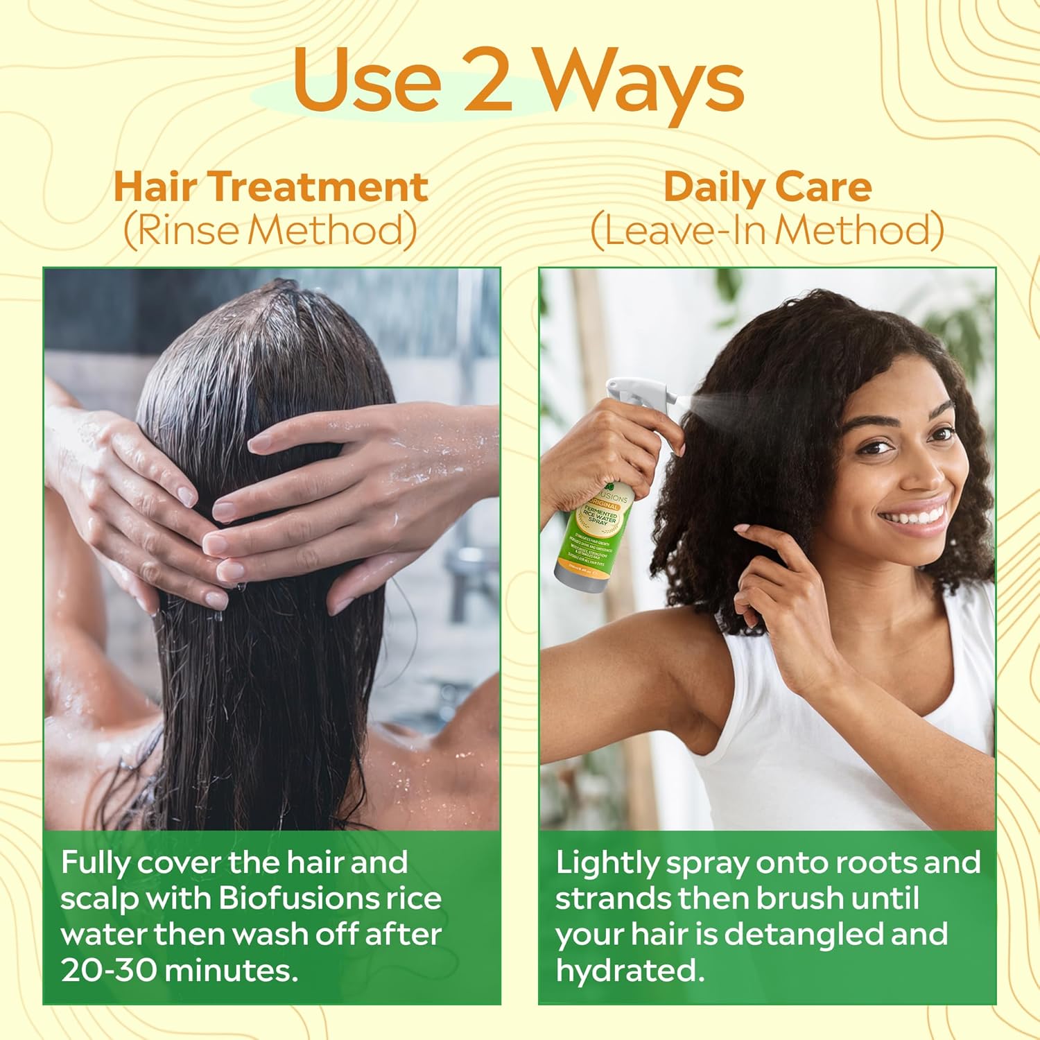 Long-Lasting, Pure & Natural – Instead of using oil for hair growth or any product for hair loss or damaged hair, try our vegan-friendly Fermented Rice Water Spray. Made with natural ingredients, this hair moisturiser has “no” harsh chemicals, additives, fillers, GMOs, or artificial colours.