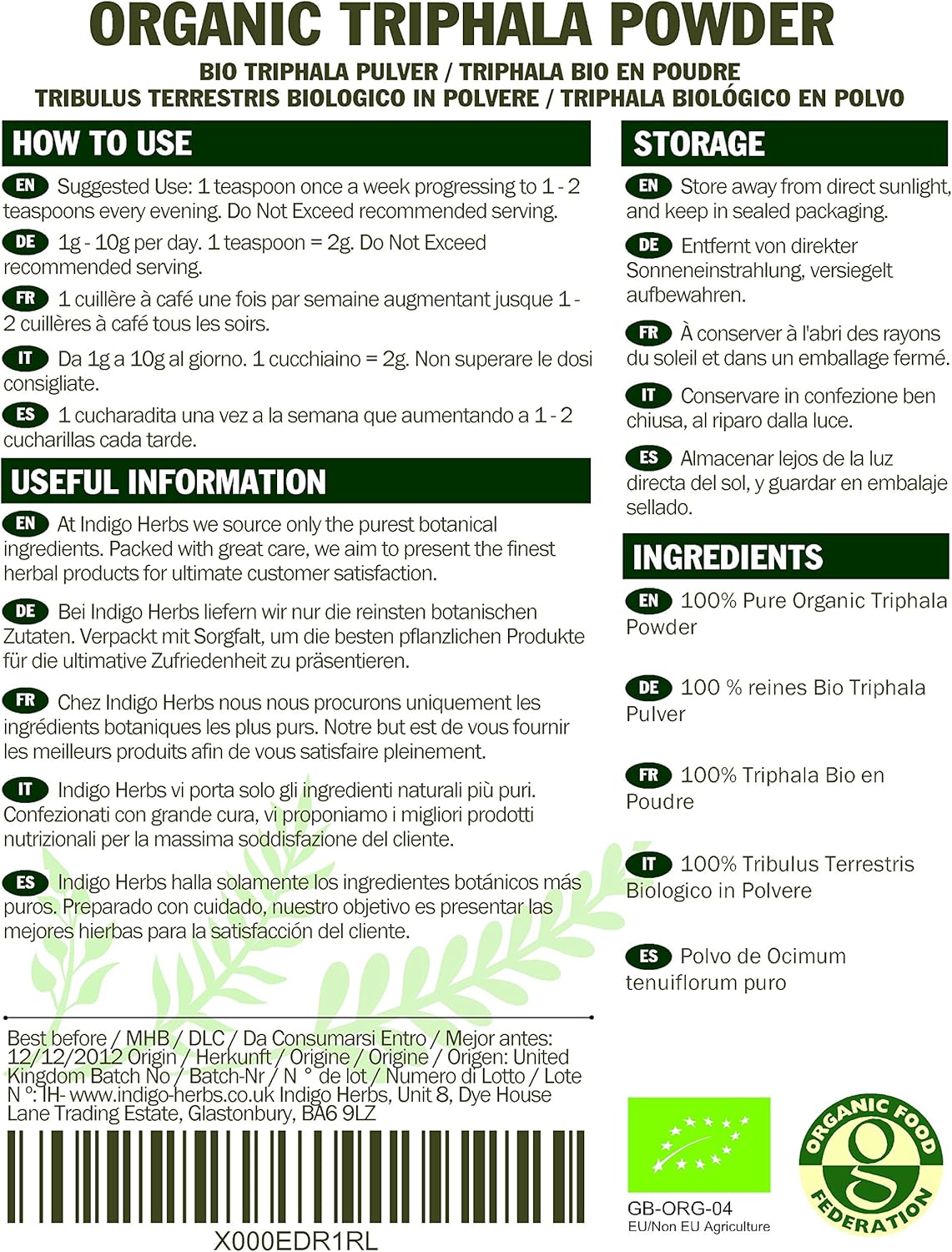 Indigo Herbs Organic Triphala Powder 500g | Digestive Support | Certified Organic | Premium Quality