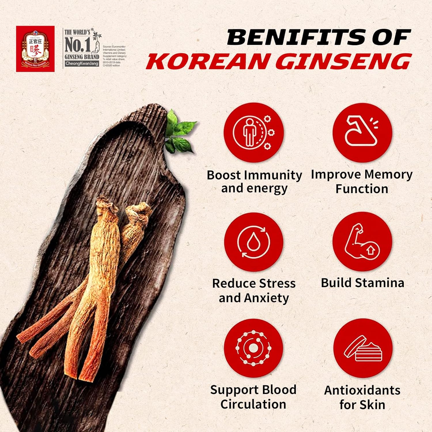 Quality control: Strictly select red ginseng raw materials according to CheongKwanJang standards, follow CheongKwanJang ‘s red ginseng manufacturing technology for more than 120 years, and undergo more than 290 internal tests before being finally produced!