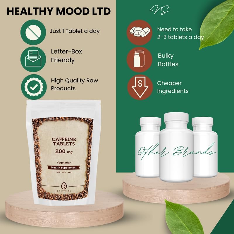 Caffeine: Each tablet contains 200mg of caffeine, a natural stimulant known for its energy-boosting properties.