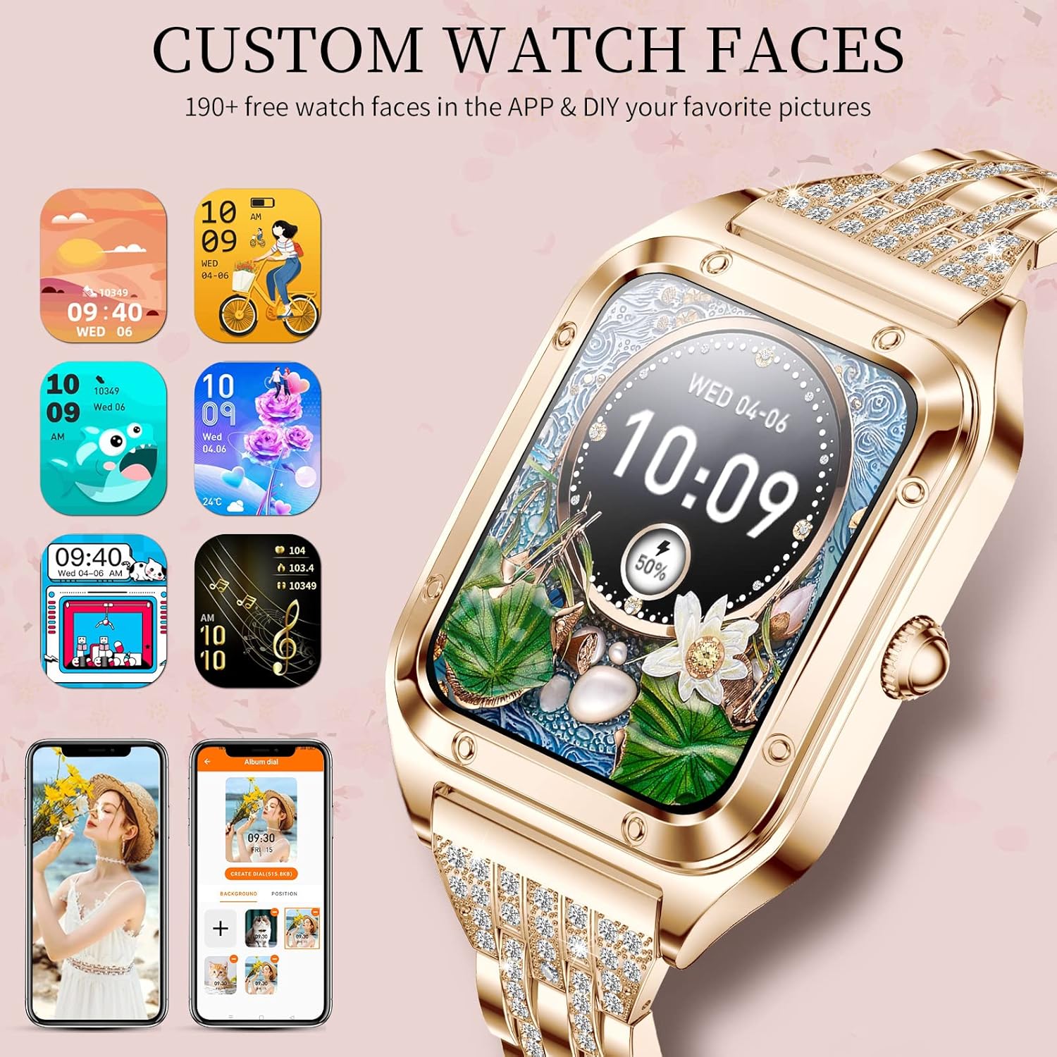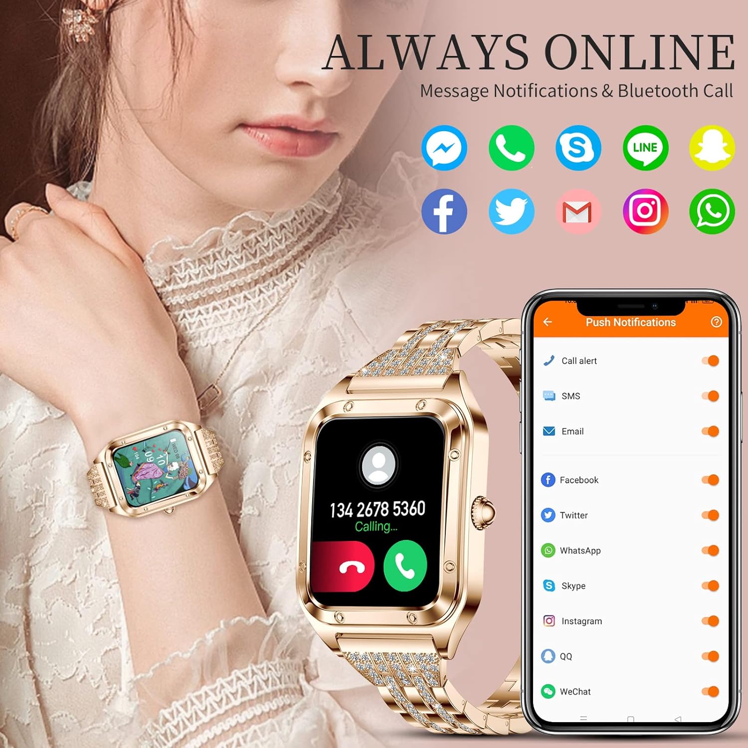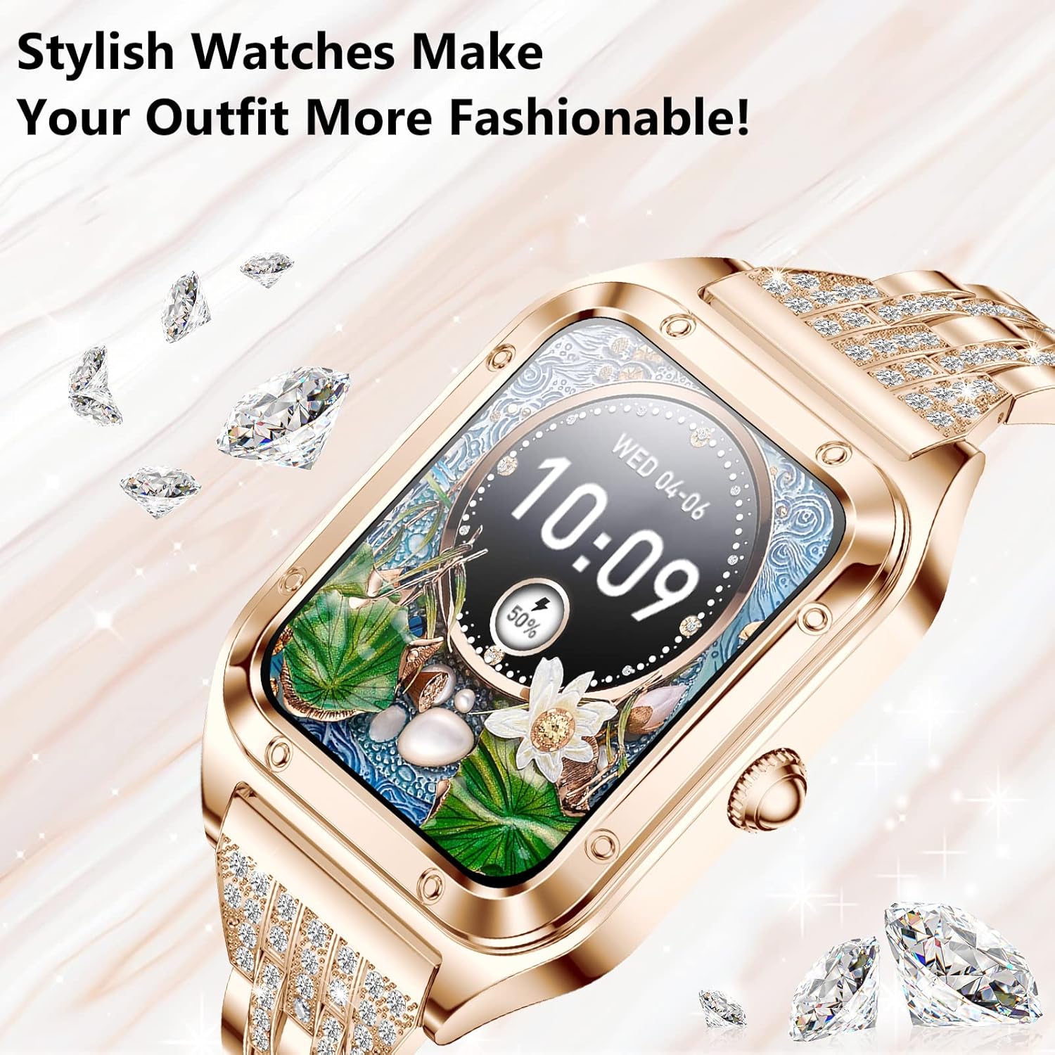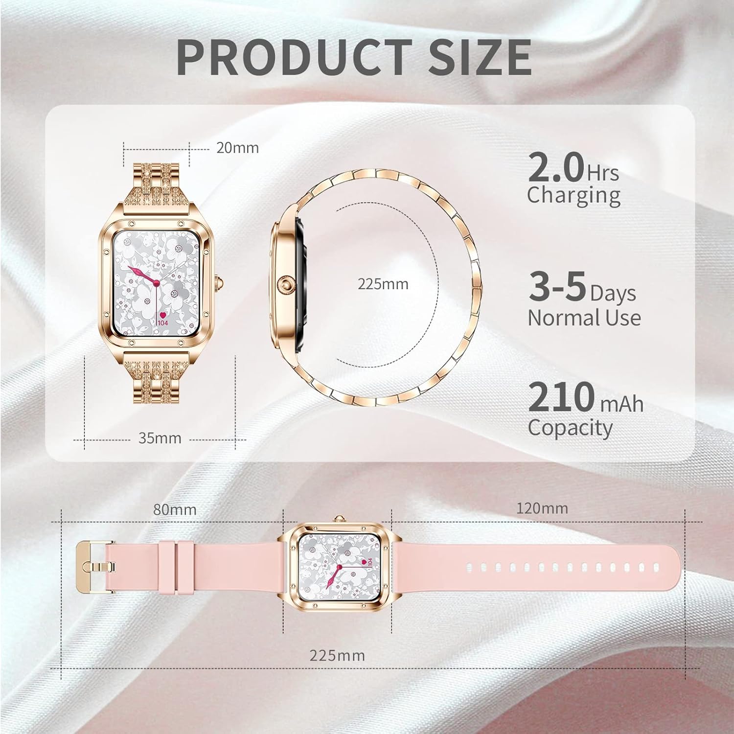 💎【Diamond Stylish Smartwatch for Women】Our women’s smartwatch comes with 2 straps. One is a silicone strap for sports, another is a very stylish diamond encrusted stainless steel for different party occasions such as weddings, birthday parties, Christmas, etc. Highly recommended for yourself, your loved ones, family and friends.