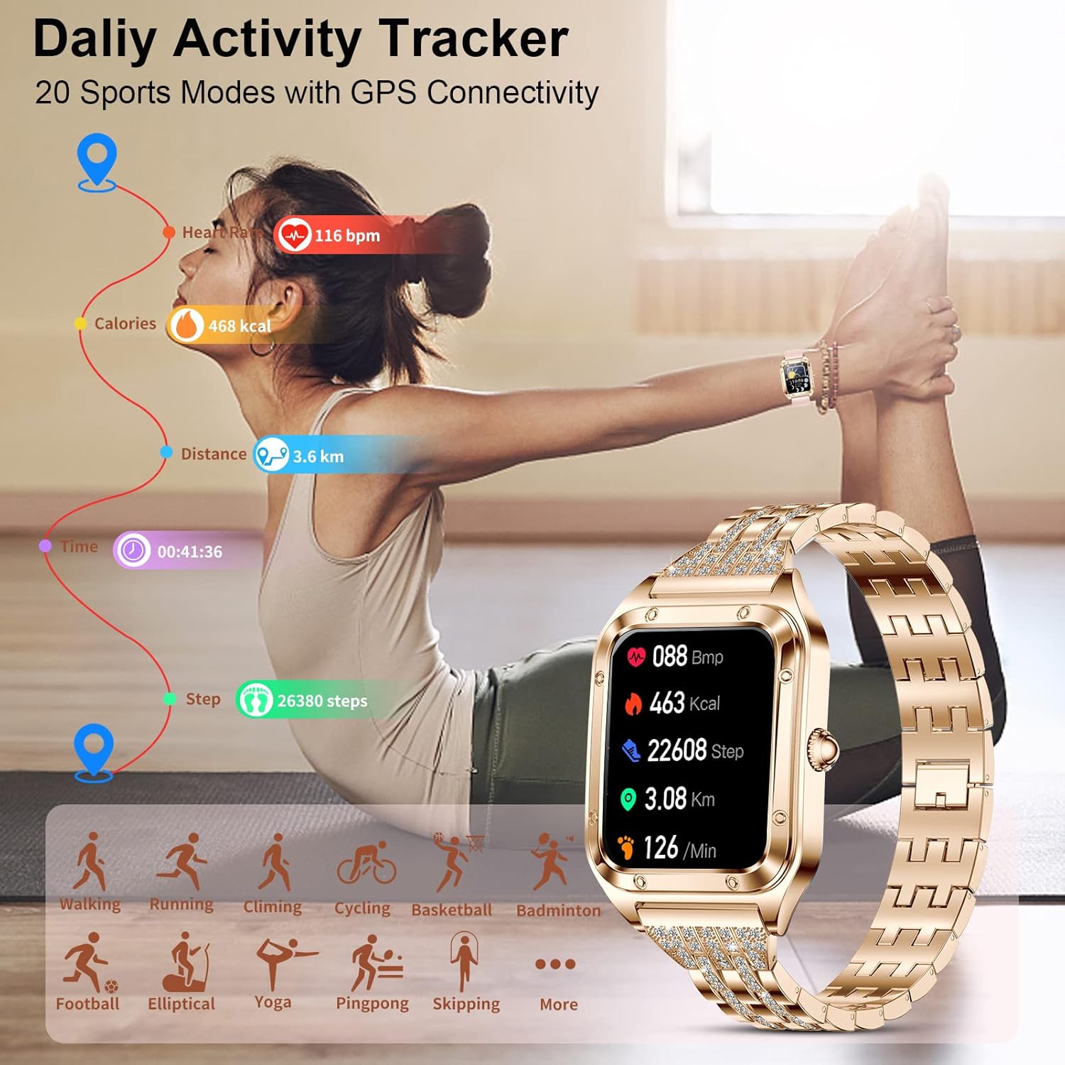 🏃【Women Fitness Watch with 20 Sports Modes】Our ladies fitness watch has multiple options to monitor exercise regime like walking, running, cycling etc. smartwatches can be connected to the phone’s GPS to view the track of movement, pace and the activity tracker can track exercise calories, distance, steps, time, heart rate. This classy designed smart watch is beautiful, easy to use. The best choice for fitness lovers.