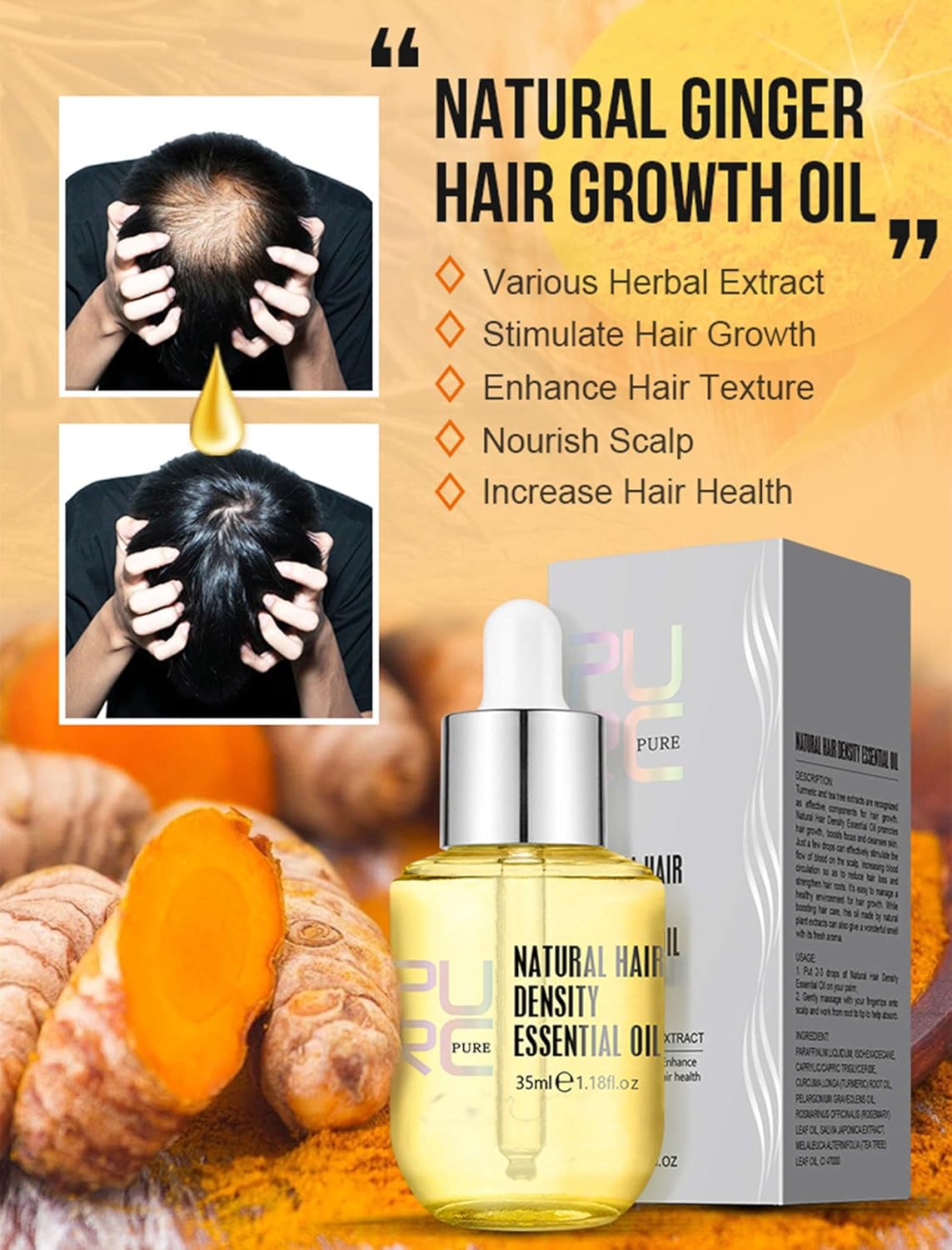 ★【PROMOTES HAIR GROWTH】The natural ginger hair growth oil is enriched with key anti-hair loss ingredients, this ingredient promotes hair growth by rejuvenating hair follicles and strengthening the structure around the follicles, resulting in thicker, denser hair that gives you amazing results!