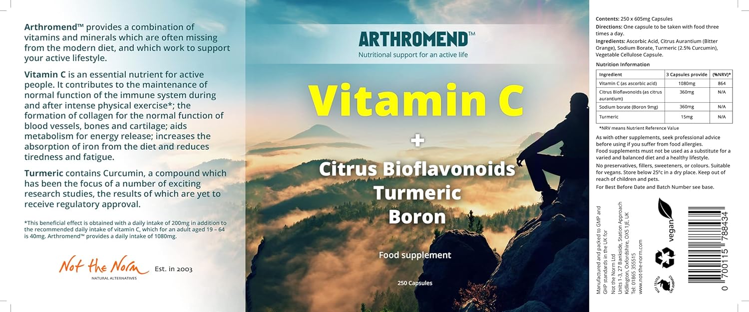 Arthromend | Food Supplement for Joint Support | Vitamin C, Citrus Bioflavonoids, Turmeric, Boron | 250 Capsules | 3-8 Month Supply