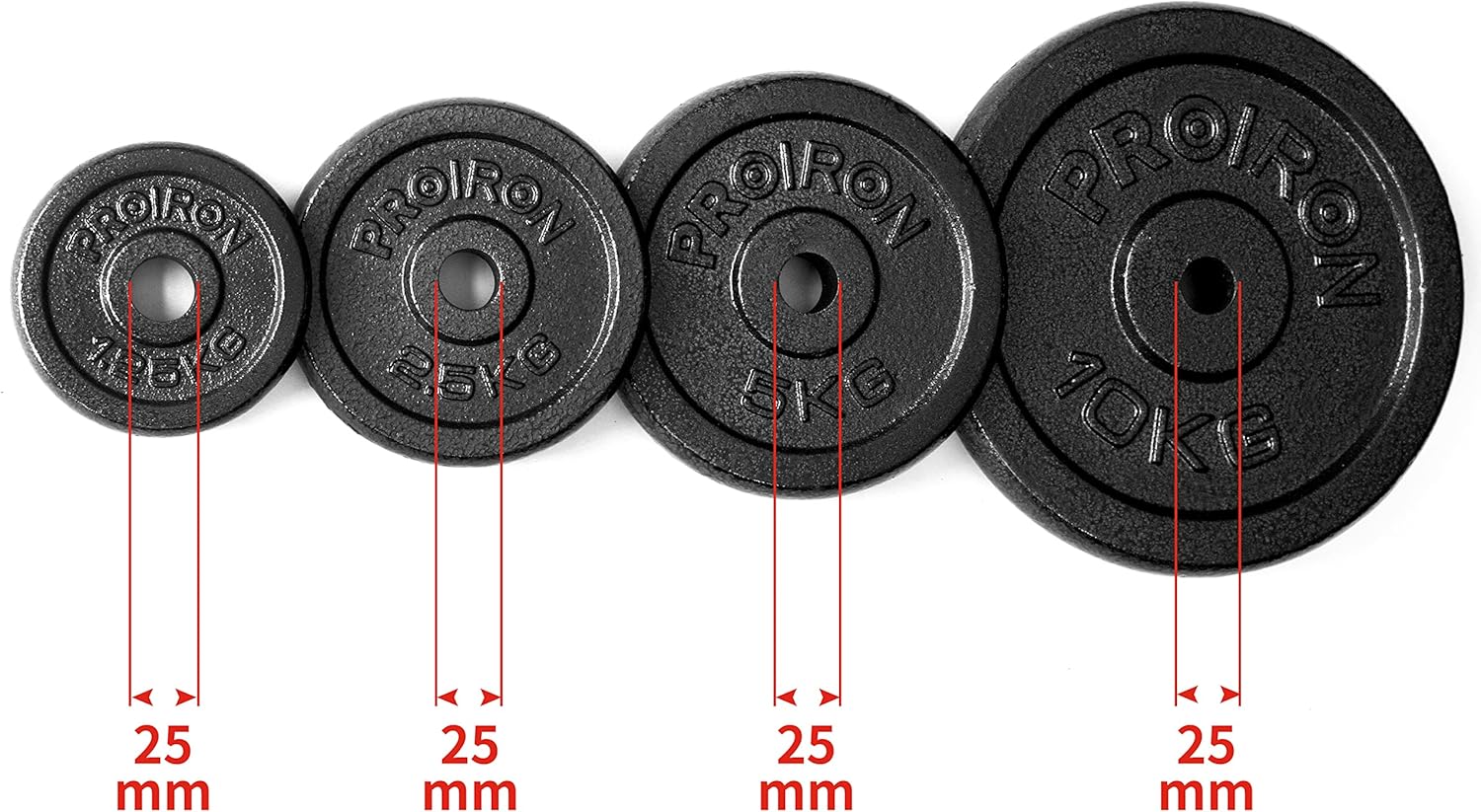 PROIRON Cast Iron Weight Plates Set 1.25kg,2.5kg,5kg,10kg (Choice of Sizes) for 1″ Dumbbell Handle Bar