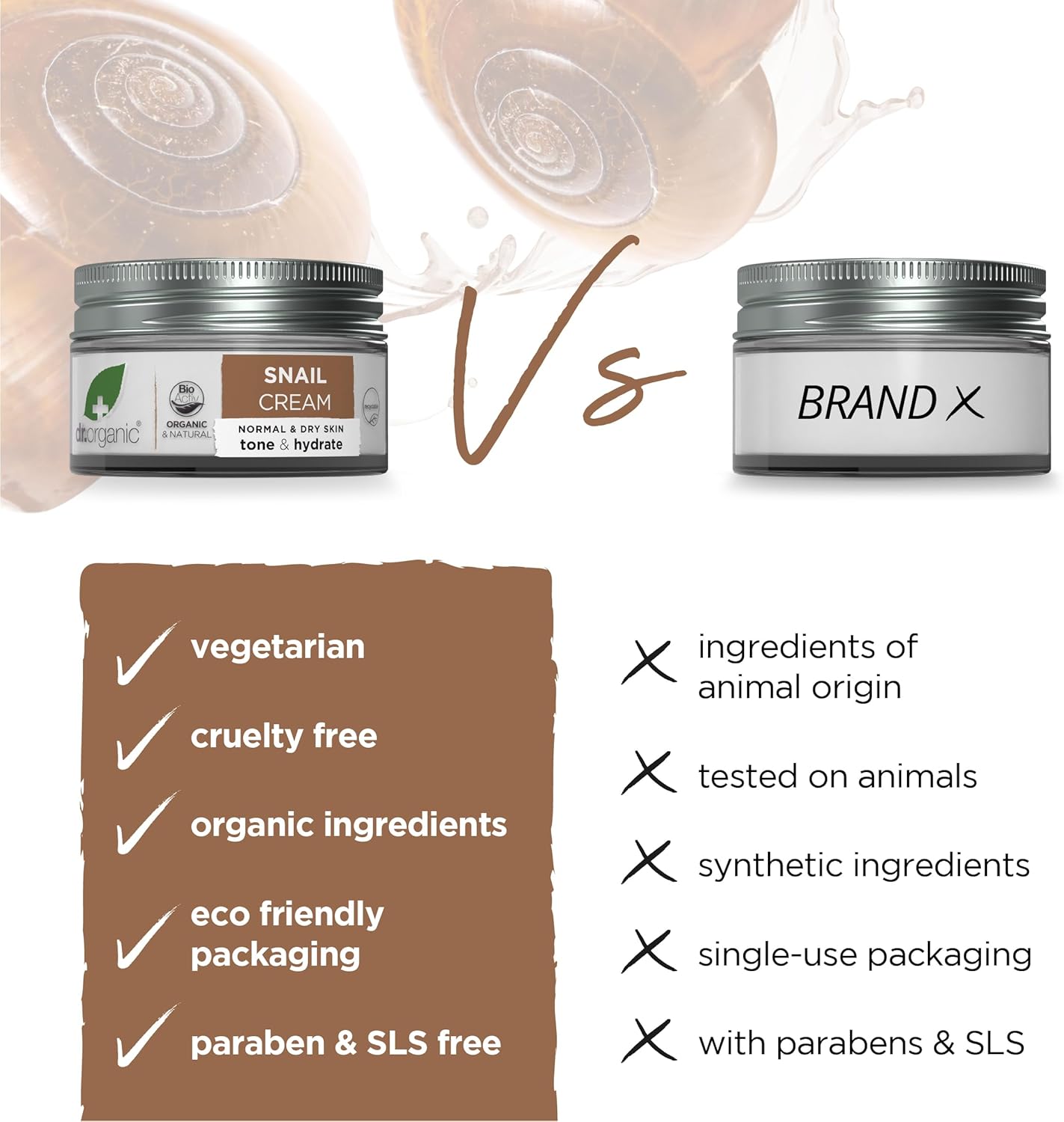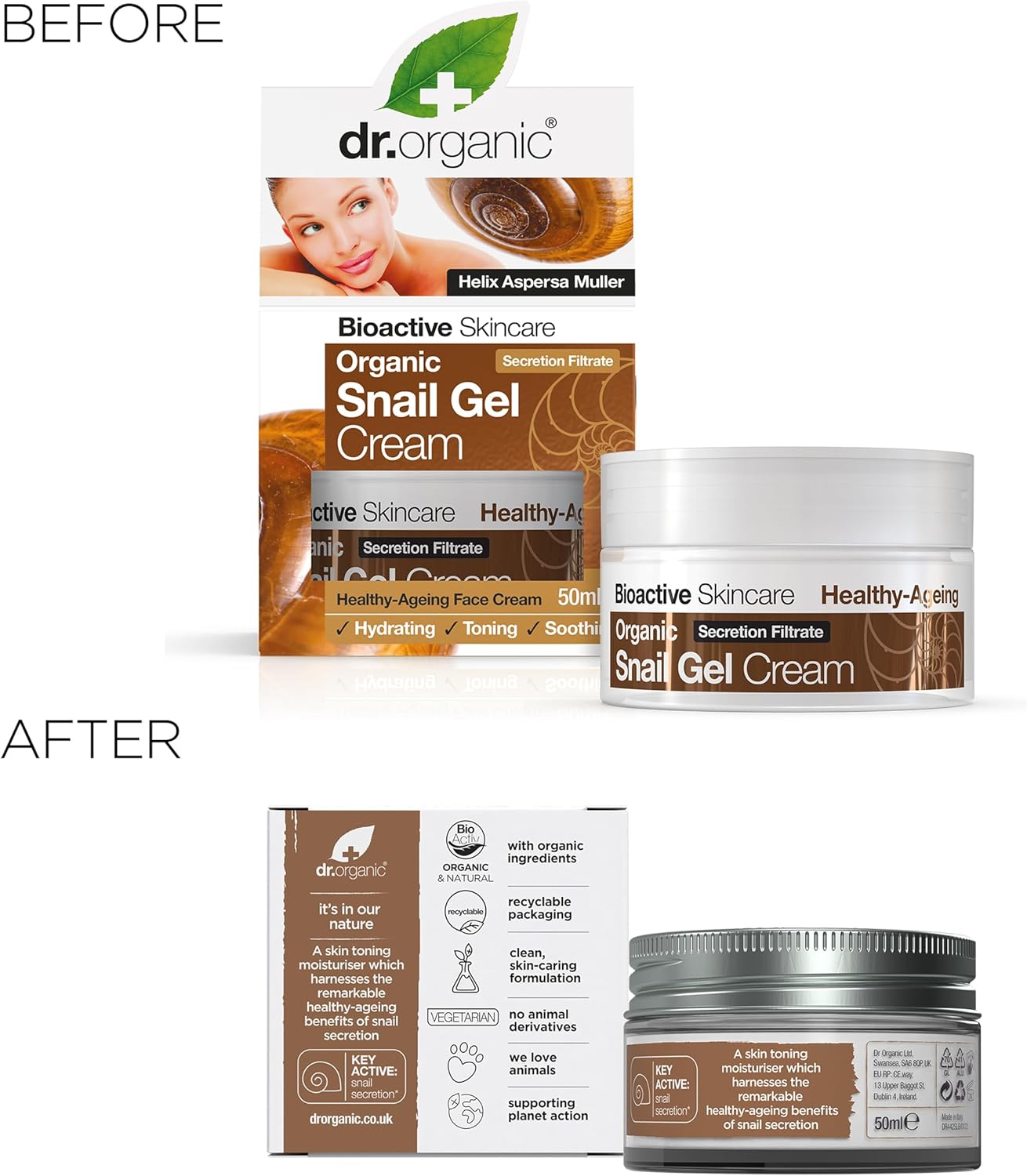 Dr Organic Snail Gel Cream, Healthy-Aging, Moisturising, Mens, Womens, Normal & Dry Skin, Natural, Vegetarian, Cruelty-Free, Paraben & SLS-Free, Recycled & Recyclable, Organic, 50ml