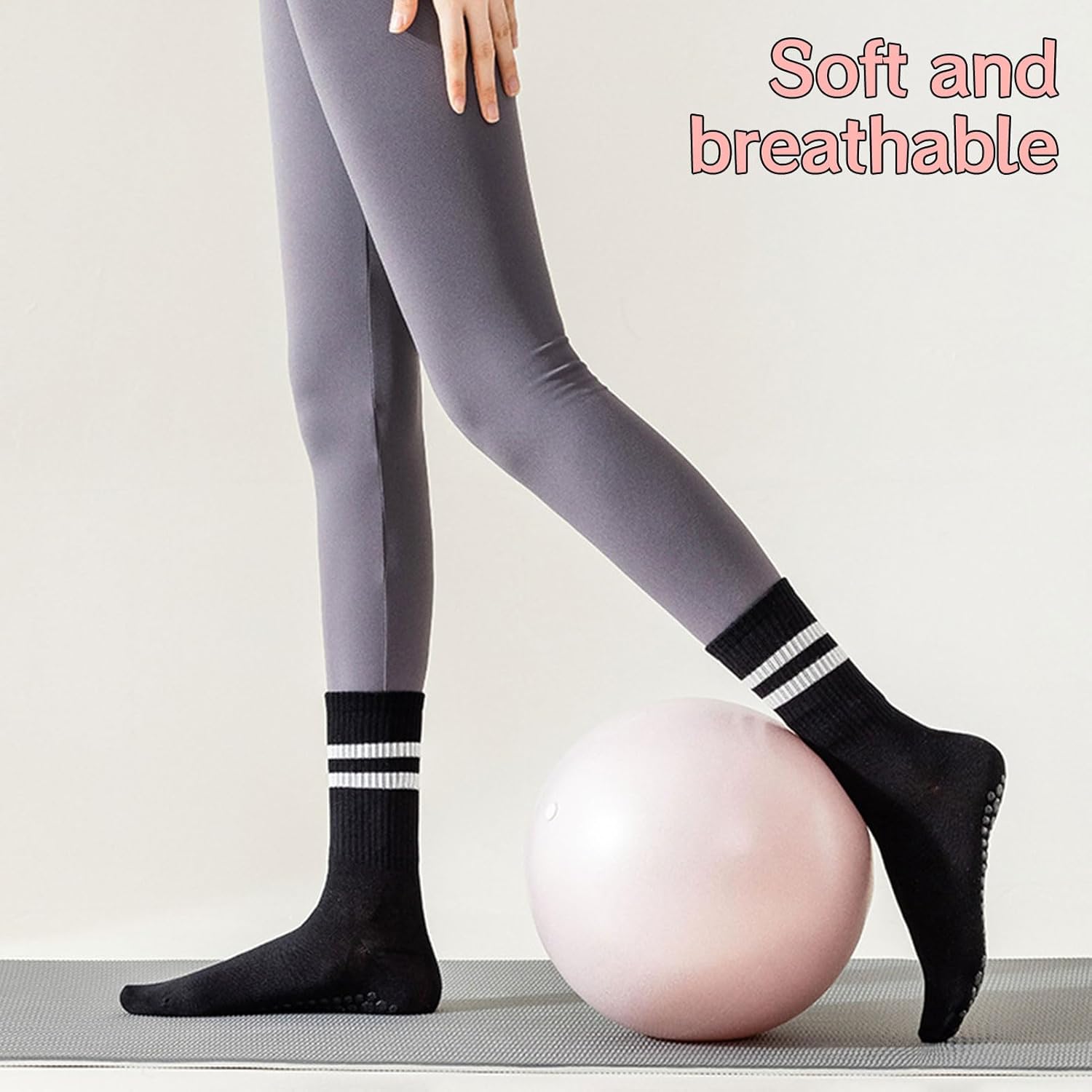 penmol Non-Slip Pilates Socks Cotton Pilates Grip Socks Women Perfect for Foot Home Workout Gym Sports