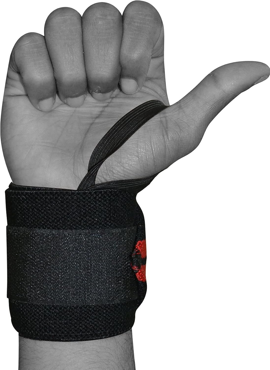Features elastic thumb loop which ensures secure and correct placement of the wraps while extended hook and loop closure system allow easy adjustment and ensure wraps remain secure while you train.