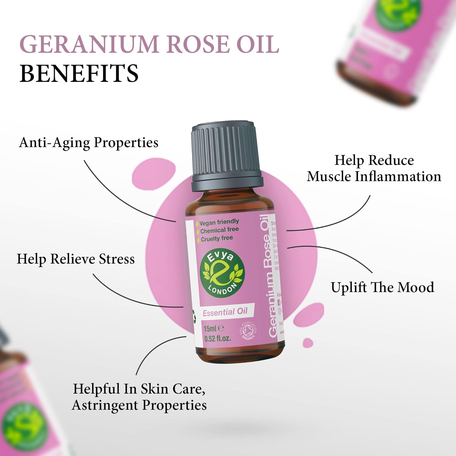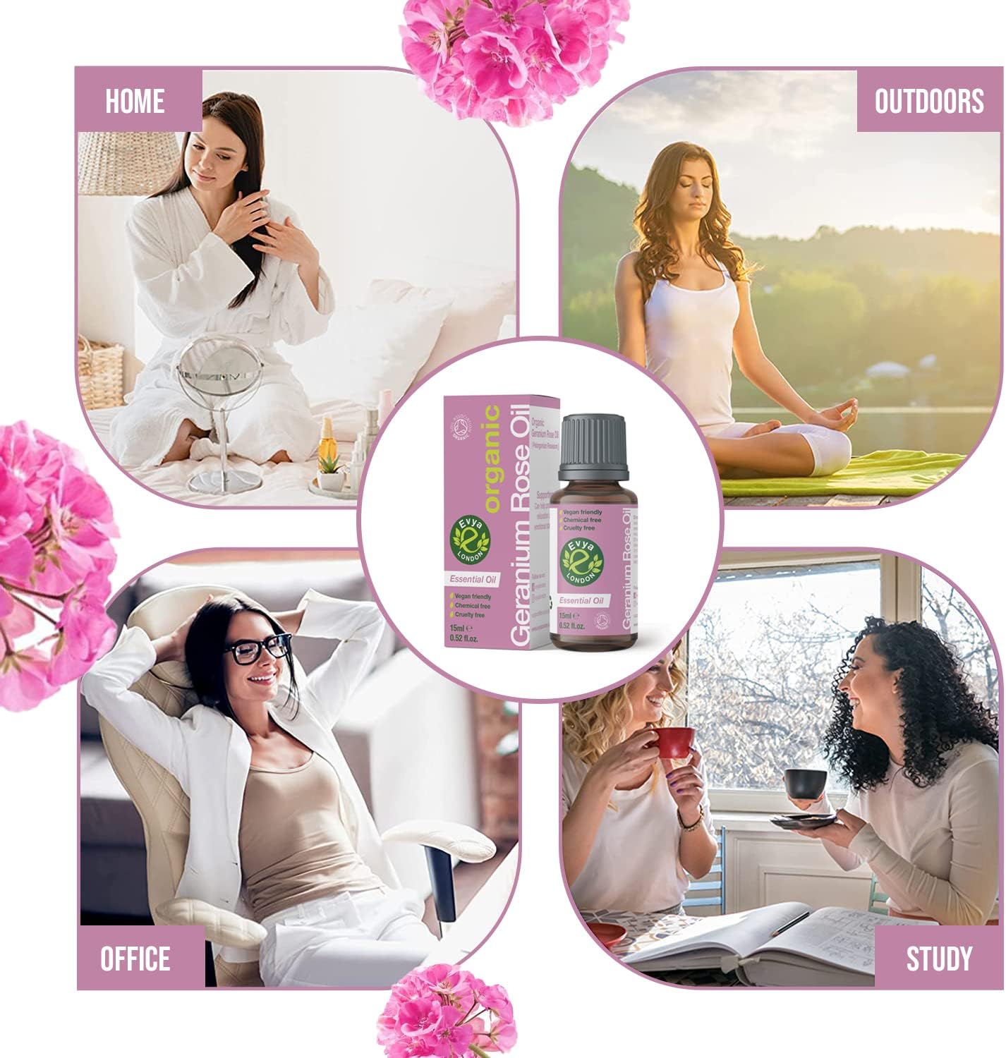 100% Natural Organic Geranium Rose Essential Oil 15ML Therapeutic Grade for Hair Care, Skin Care, Bath, Diffuser Undiluted & Cruelty Free