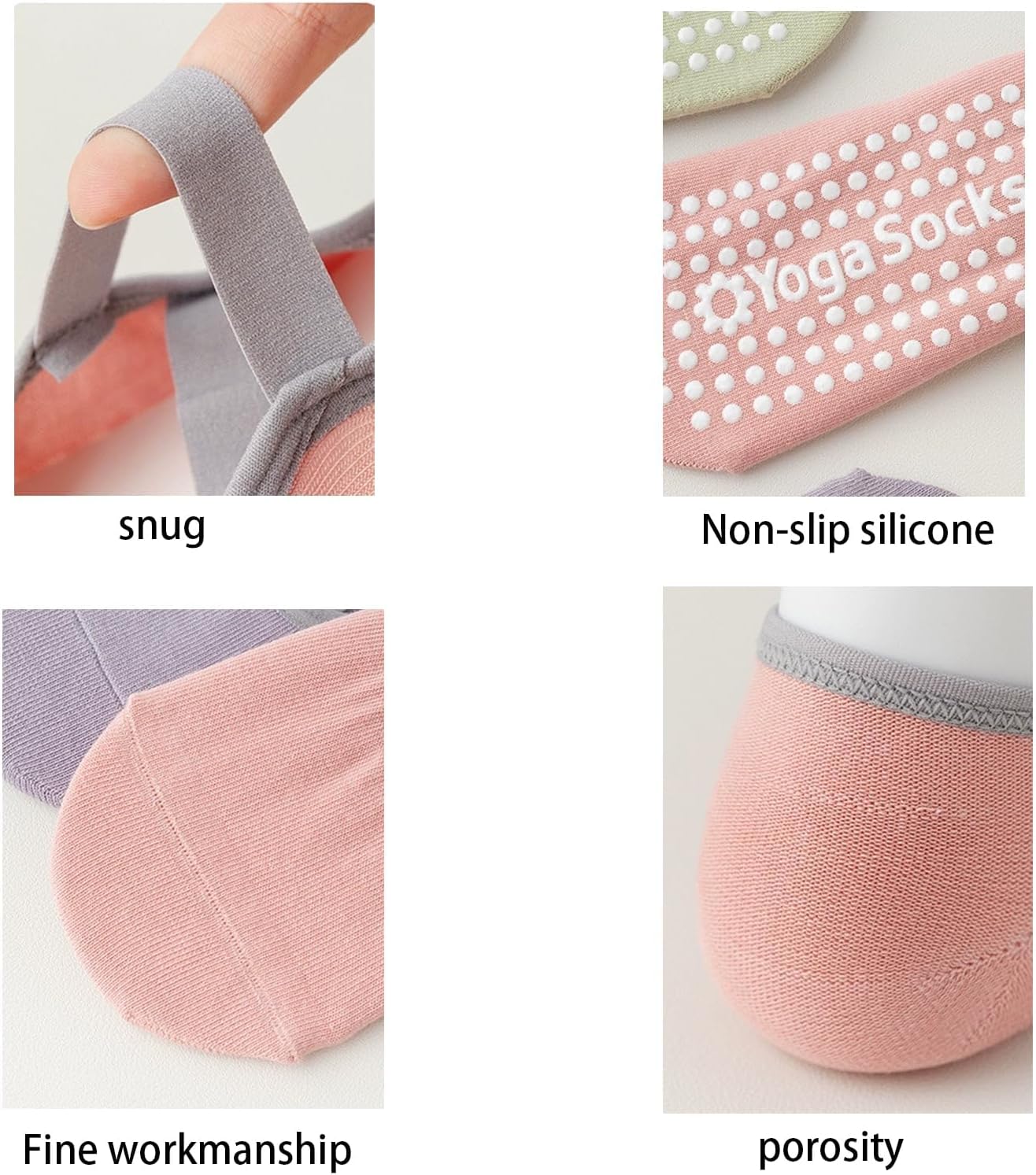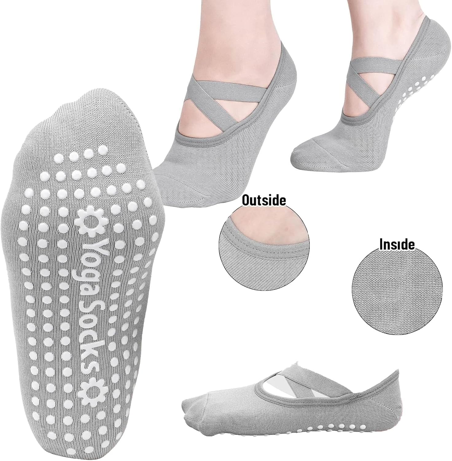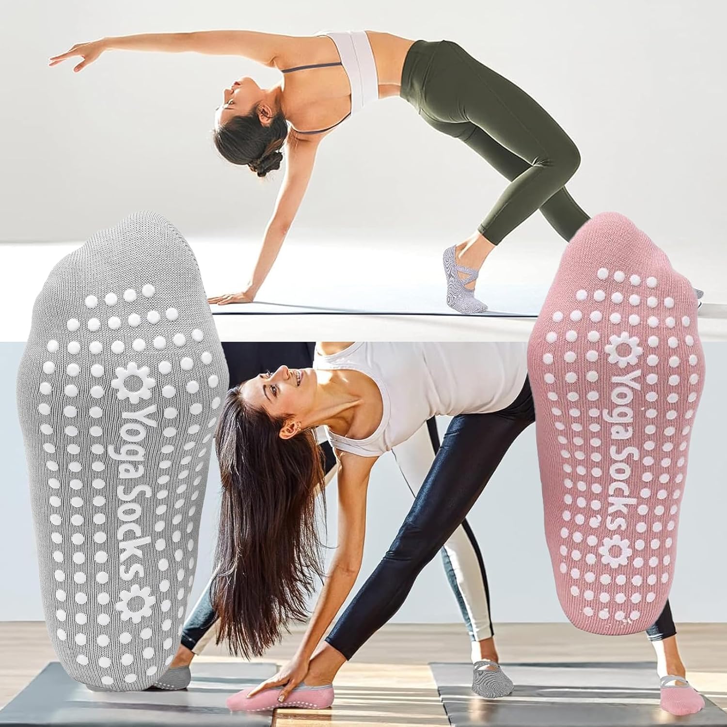 2 Pairs Pilates Socks Non-Slip,Womens Soft Cotton Dance Barre Gym Fall Prevention Grip Yoga Socks for Ladies Girls Kids Fitness,Ballet,Home Sports Workout Equipment Trainer Accessories(Pink+Gray)