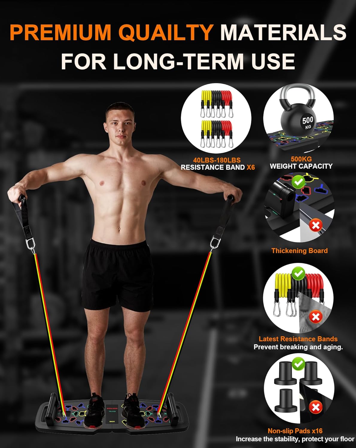 22-in-1 Home Gym Equipment, Portable Push Up Stands Press Up Board Handles for floor Home Gym Systems with 36 Gym Accessories, Resistance Band Bar,Abdominal Rollers