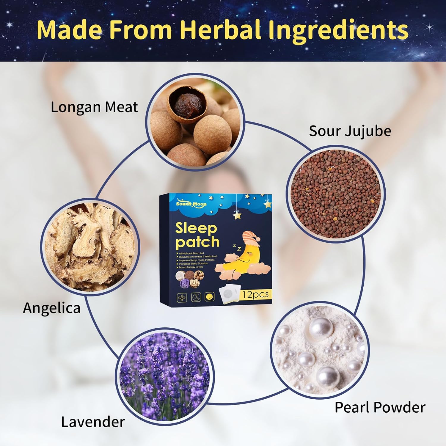 【Natural Ingredients】The sleep patches contain pearl powder, sour dates, longan flesh, angelica and lavender, which are absorbed through the skin to promote better sleep, rather than pills or liquids, with no side effects, making them safer and more secure for you to use.