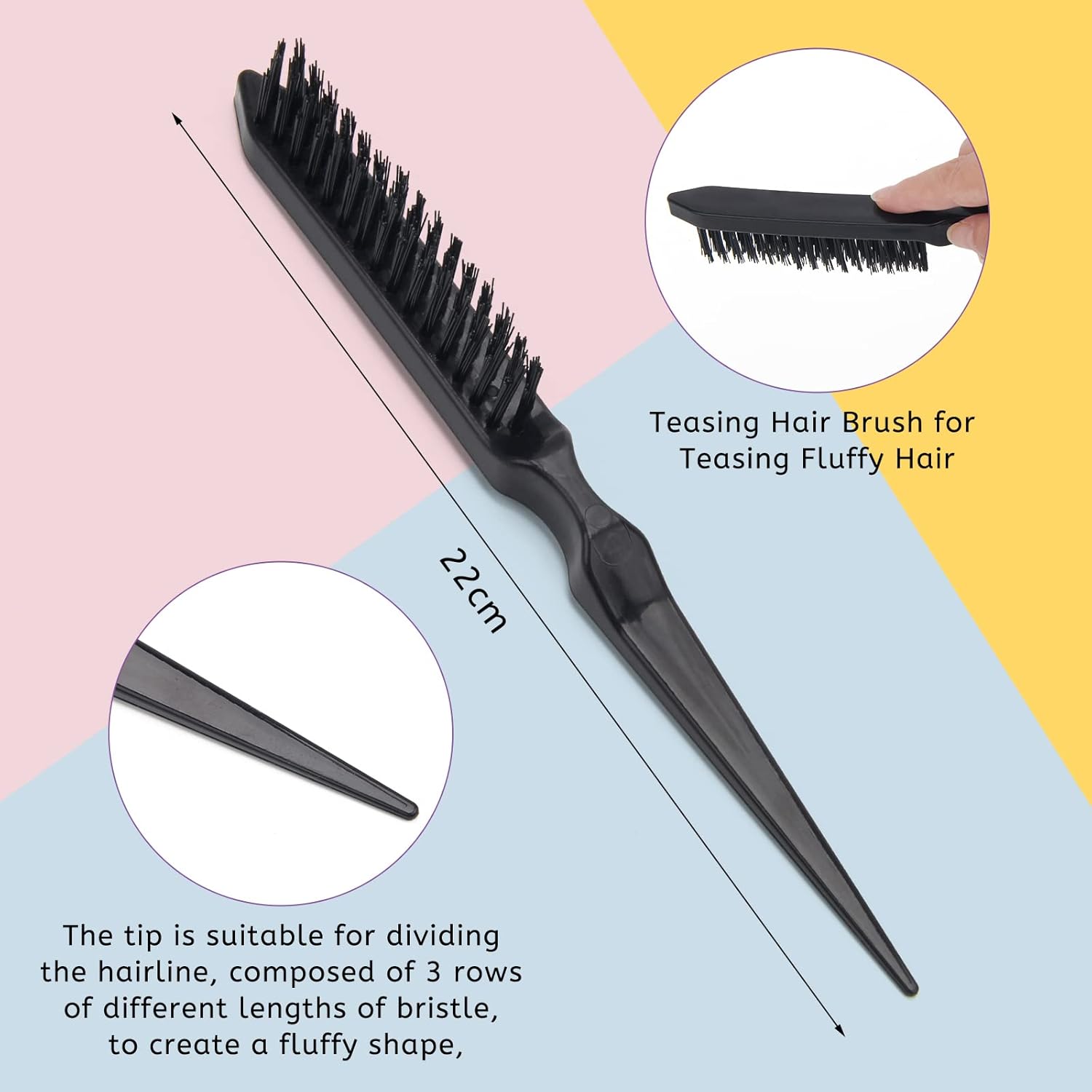 3Pcs Teasing Brush Set, Windspeed Teasing Hair Brush for Teasing Fluffy Hair/Double Sided Edge Brush for Hair Grooming/Pin Tail Comb, Portable Hair Styling Tools for Women Hair Care (Black)