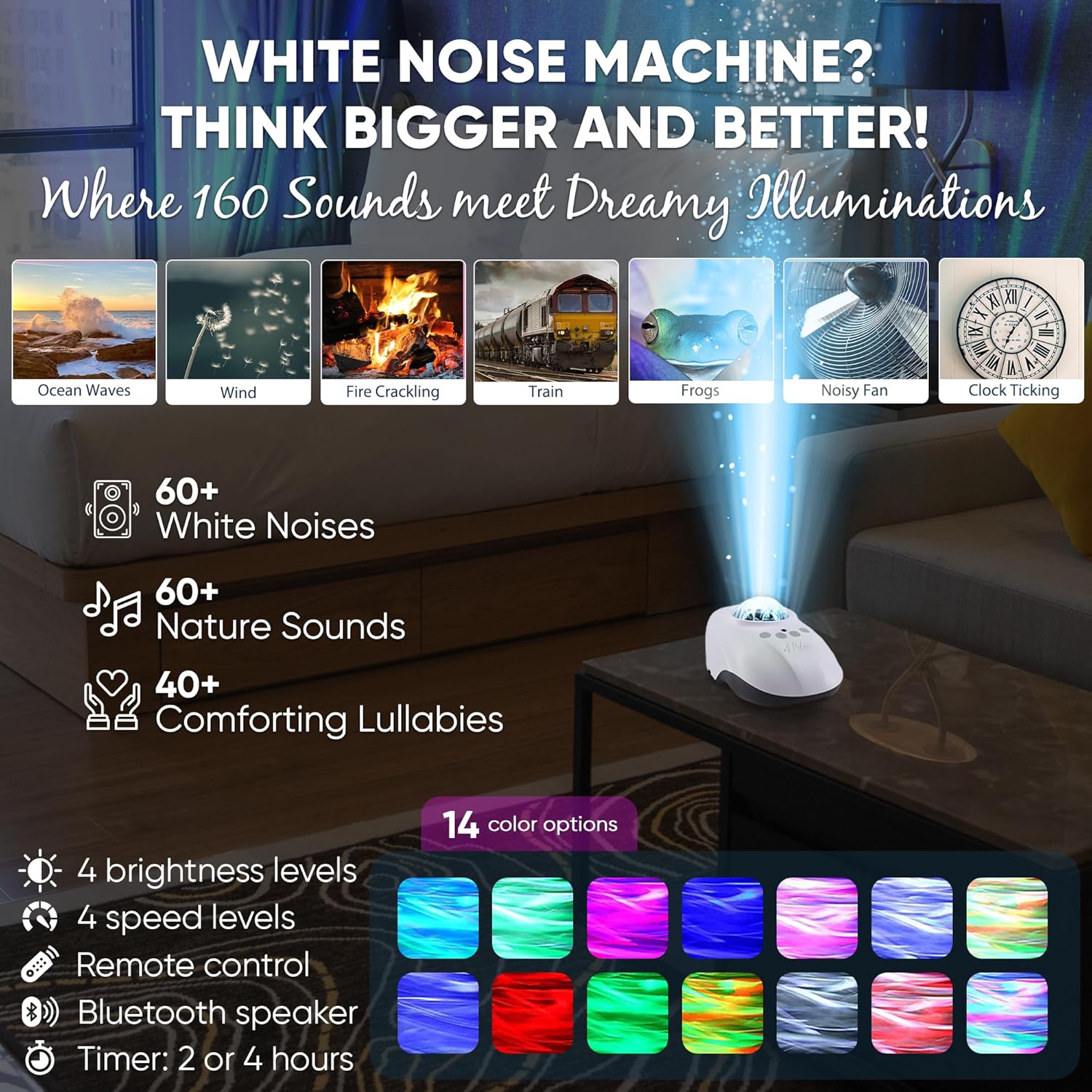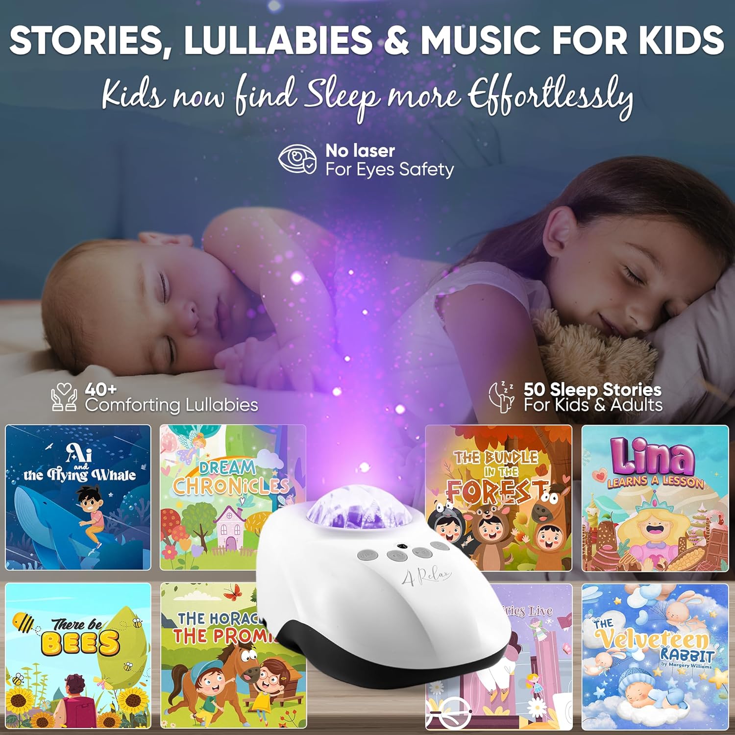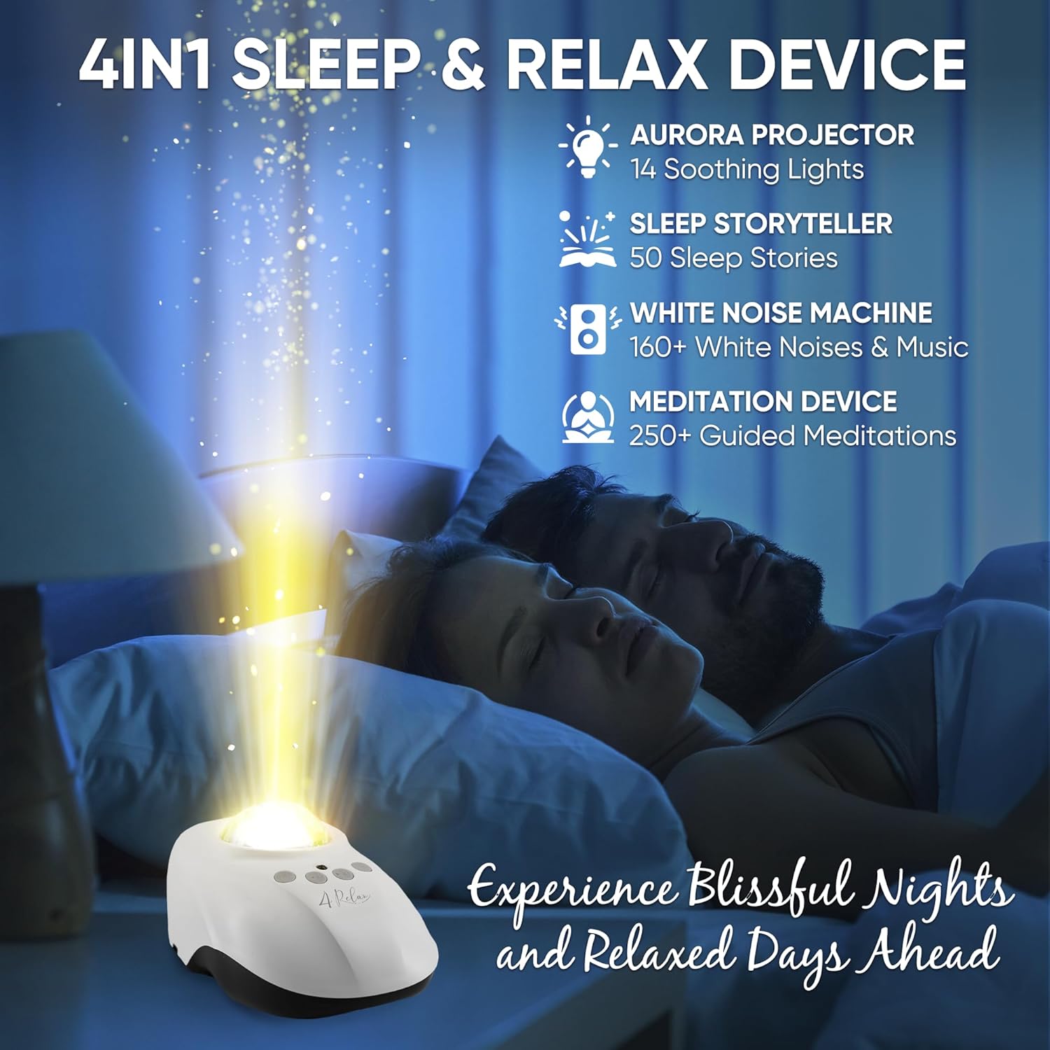 4Relax Sleep Aid Device: White Noise Machine & Galaxy Projector with APP. 160 Sounds, 250 Meditations, 50 Bedtime Stories. For Babies, Kids & Adults