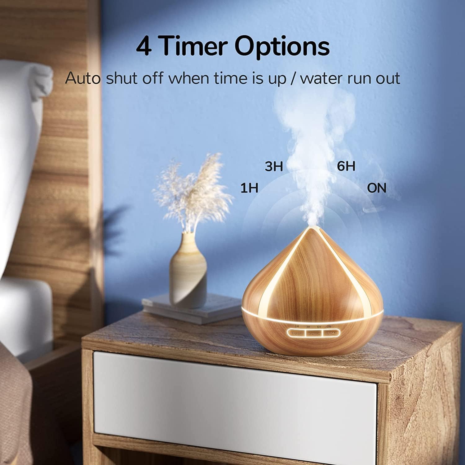 【4 Timer And Waterless Shut-off】:The aroma oil diffusers come with 4 built-in timer setting modes: 1 / 3 / 6 Hours/ ON which can be set via the “MIST” button on the aroma oil diffusers or with the remote control. It is easy and convenient to use. Also, this fragrance oil diffuser will automatically shut off when water runs out.