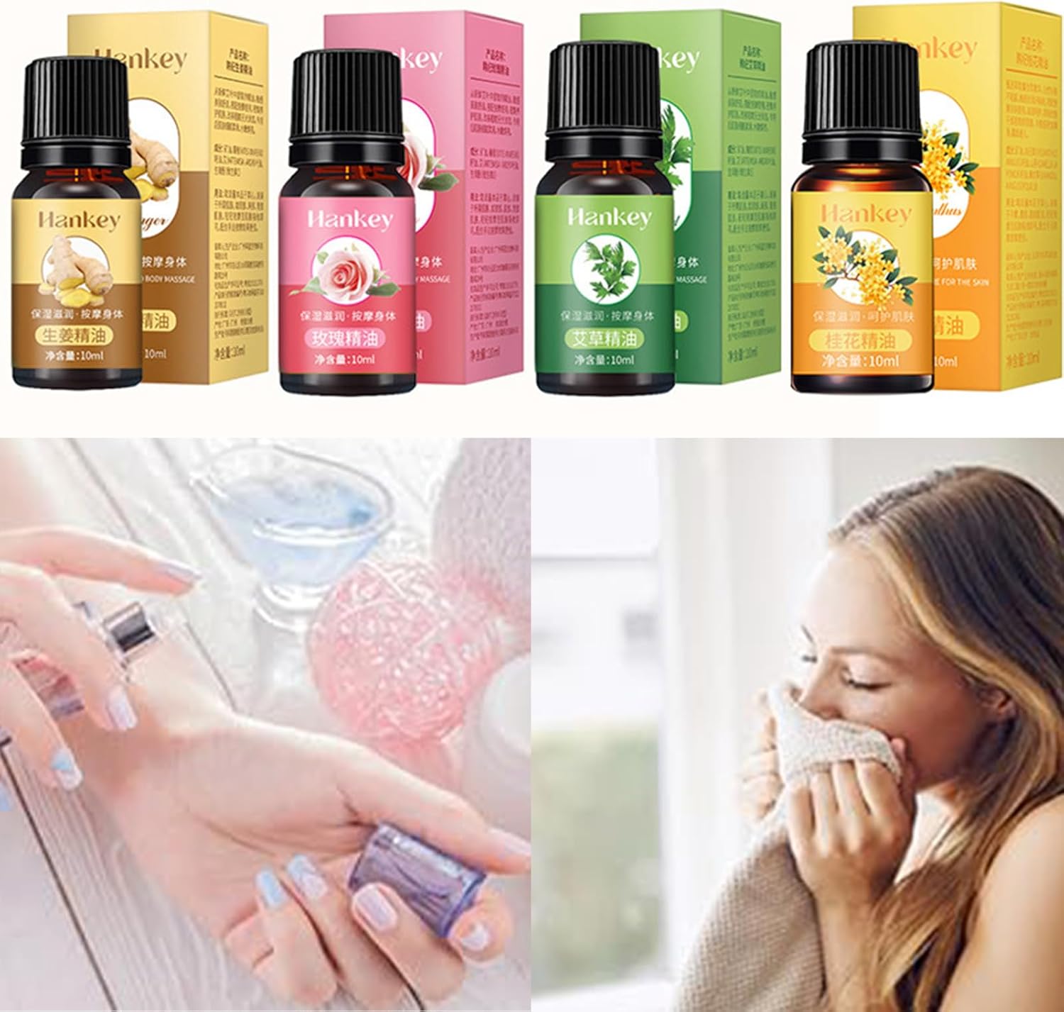 【7x10mL Essential Oils Set】Essential oils set contains 7 bottles with 10 ml of the most popular oils, Wormwood oil, Rose oil, Ginger oil, Tea Tree oil, Lavende oil, Grape Seed oil, Osmanthus oil! We have kinds of essential oils for you to meet your different needs and also you can DIY to blend them to create new scents For external use only.
