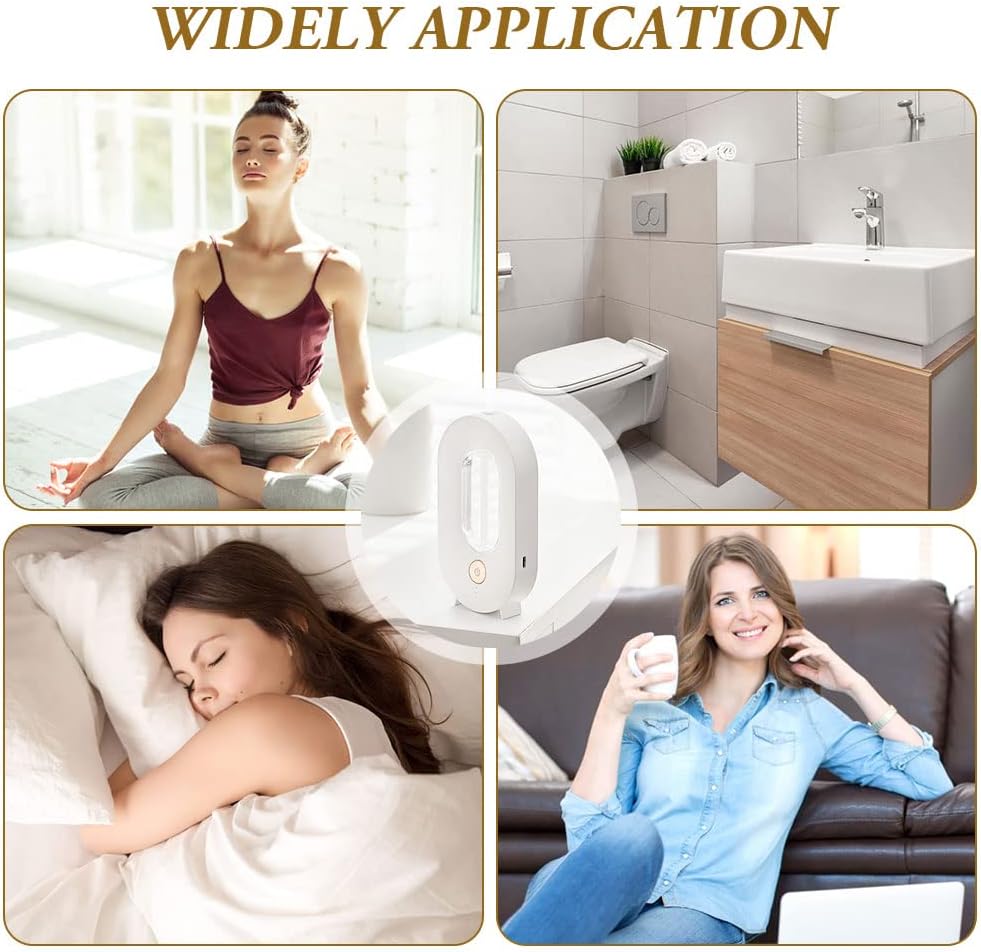 【ULTRA QUIET, PORTABLE AND COMPACT】With our silent design, the sound of our atomizer machine is less than 25 decibels. Whether you’re sleeping, exercising or working, you’ll enjoy maximum freedom from distractions. The compact and unique design makes it portable, suitable for various scenarios such as bedroom, business accommodation, yoga, spa, toilet, living room, camping and travel.