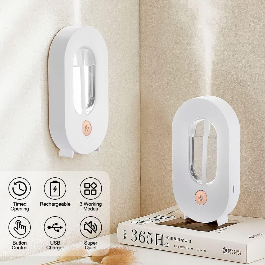 【USB CHARGING & WALL MOUNT DESIGN】You can take this essential oil diffuser humidifier anywhere you want, the USB-TYPE-C charging function can conveniently charge the diffuser on the go. Can be used for a long time once fully charged. Comes with non-marking wall stickers, which can be placed on the desktop or hung on the wall, small size does not take up space.