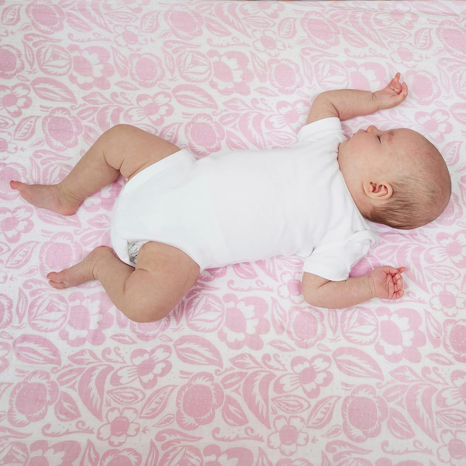 ☁️ 100% COTTON: Made from our quality soft, durable and lightweight muslin, your little one will be as comfy as possible. With one layer of fabric for ample breathability, these pastel pink, purple and green floral print blankets keep babies warm and snug, with safety at their core.
