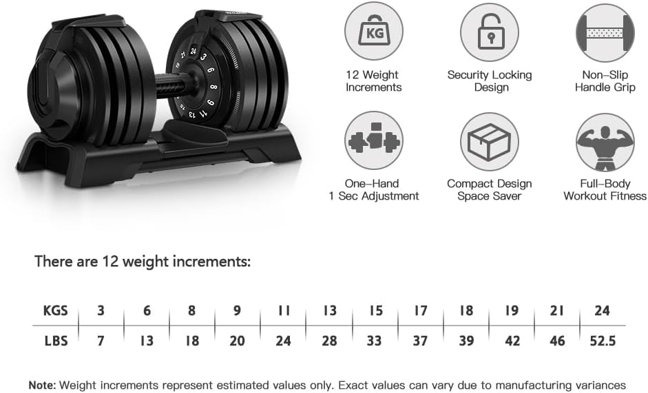 🏋️♂️ QUICK WEIGHT ADJUSTMENTS: Easily switch between 12 adjustable weight settings (3kg to 24kg) for efficient and versatile workouts.