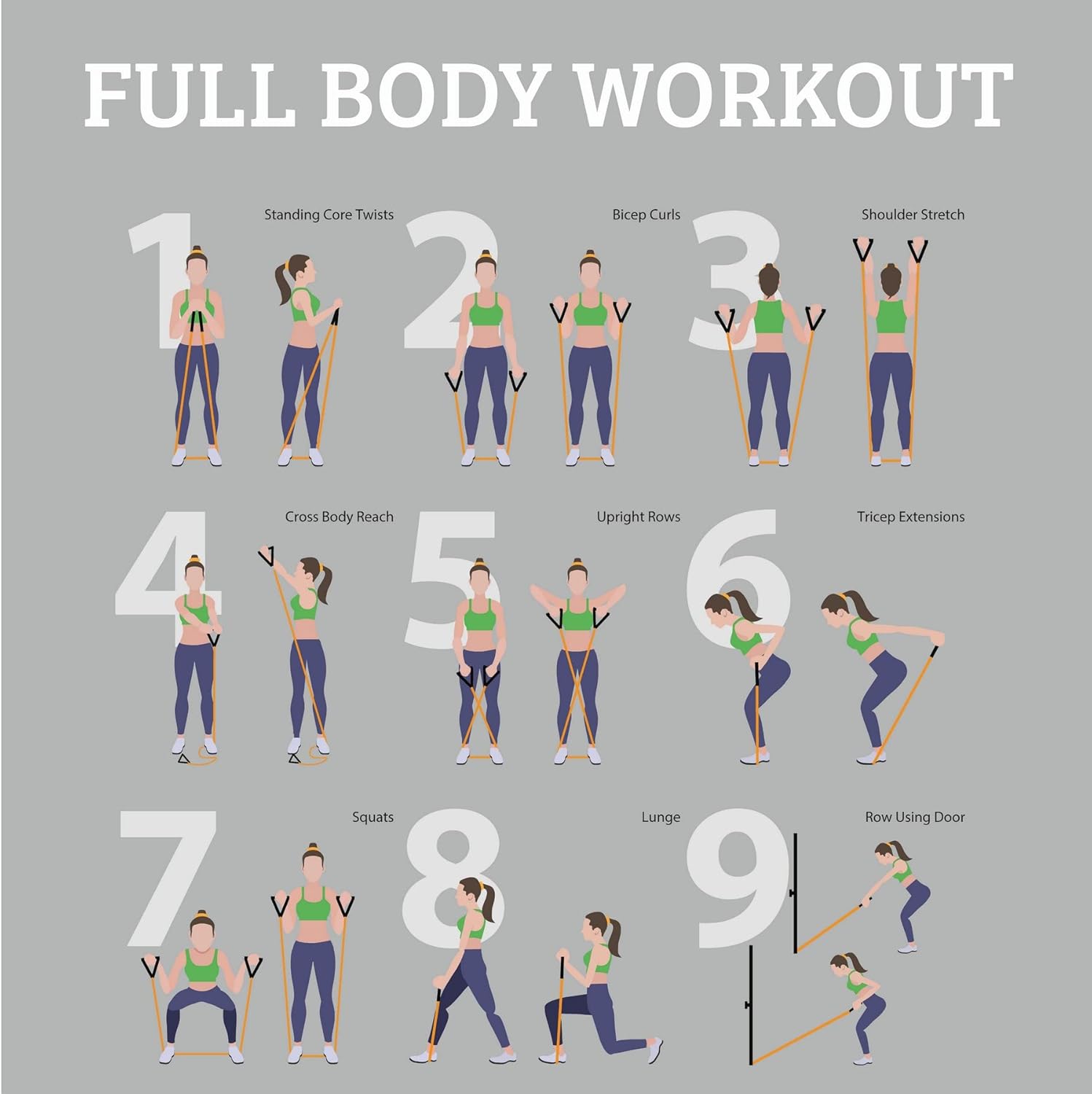 Afx Sports Exercise Resistance Bands Set, Fitness Stretch Workout Kit, 5 Tubes, 2 Foam Handles, 2 Ankle Straps, Door Anchor For Men Women, Home Gym Equipment, Yoga Pilates Physio