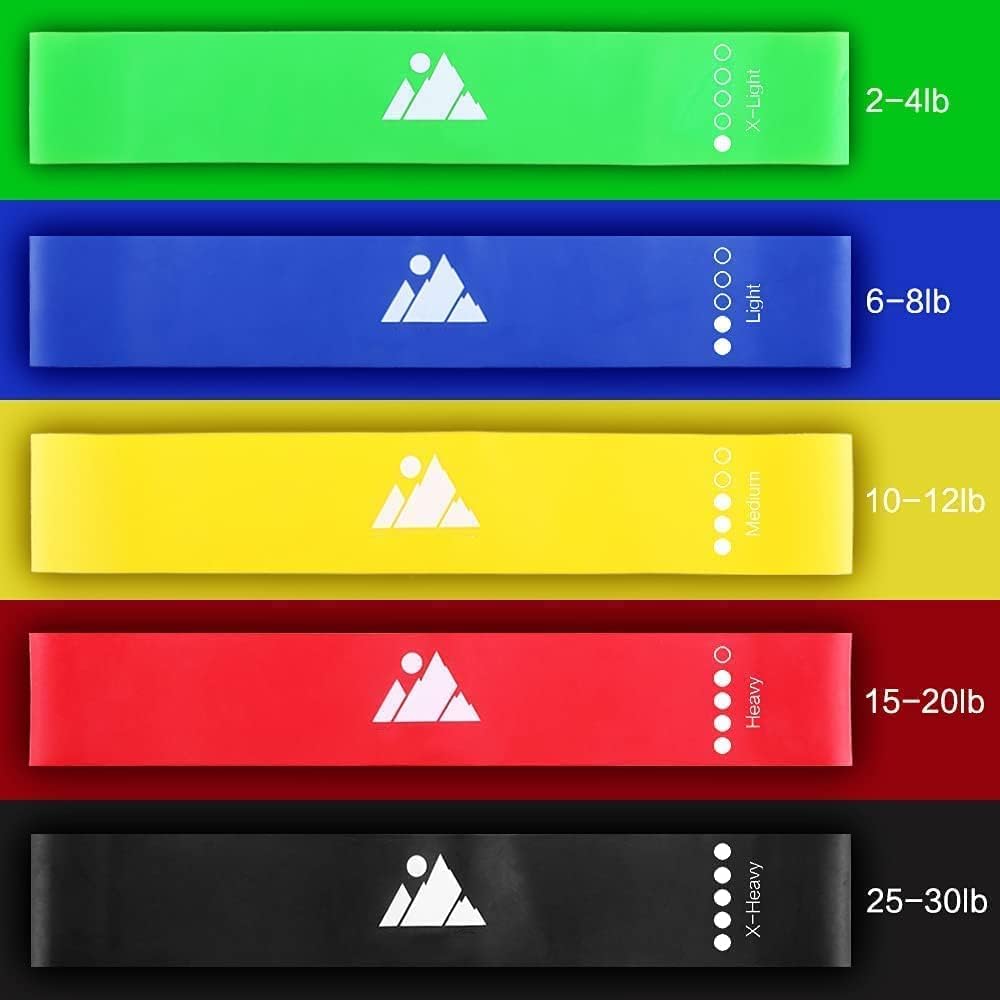 5 PREMIUM QUALITY LOOP RESISTANCE BANDS: This set contains 5 Loop Resistance Bands of 30 by 5 cm. For each exercise you can choose 1 of our 5 color coded Bands for different stretch levels: Extra Light, Light, Medium, Heavy and Extra Heavy. The Loop Resistance Bands are made of premium and eco-friendly latex which is durable, elastic and has a great feel. They are built to last!