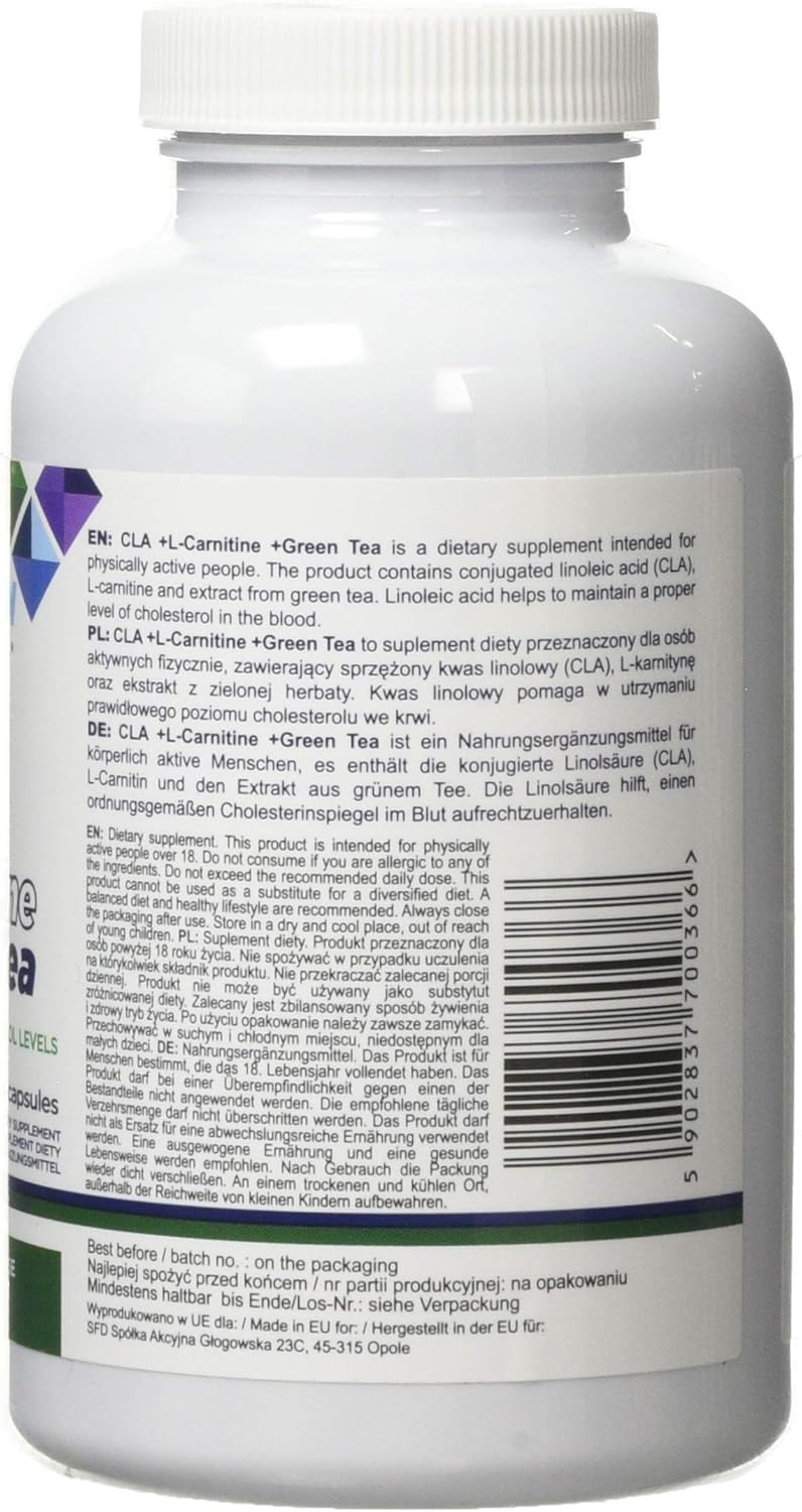 Cla + L-Carnitine + Green Tea Is A Dietary Supplement For Physically Active People Containing Conjugated Linoleic Acid (Cla), L-Carnitine And Green Tea Extract.Cla Means Conjugated Linoleic Acid. Linoleic Acid Is An Organic Chemical Compound From The Group Of Unsaturated Fatty Acids Of The Omega-6 Type. In The Organism, Linoleic Acid Is Metabolised To A Number Of Substances Essential For Correct Metabolic Function. Conjugated Linoleic Acid Has A Broad Pro-Health Effect. In Addition, Linoleic Acid Helps To Maintain Normal Blood Cholesterol Levels.