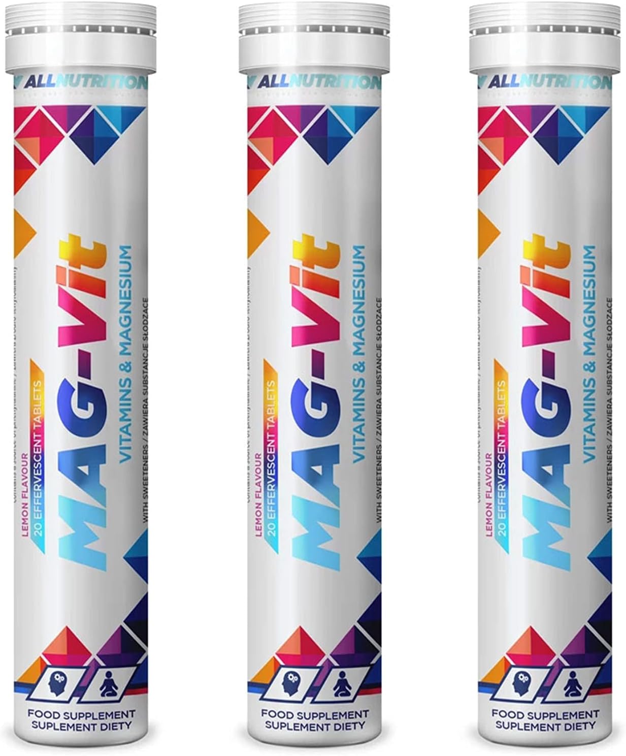 💪 POWER OF MAGNESIUM: ALLNUTRITION Mag-Vit is a dietary supplement in the form of effervescent tablets with a lemon flavor, supplementing the diet with vitamins and magnesium. Magnesium supports the proper functioning of muscles and the nervous system, reduces fatigue, supports the immune system and helps maintain healthy bones and teeth.