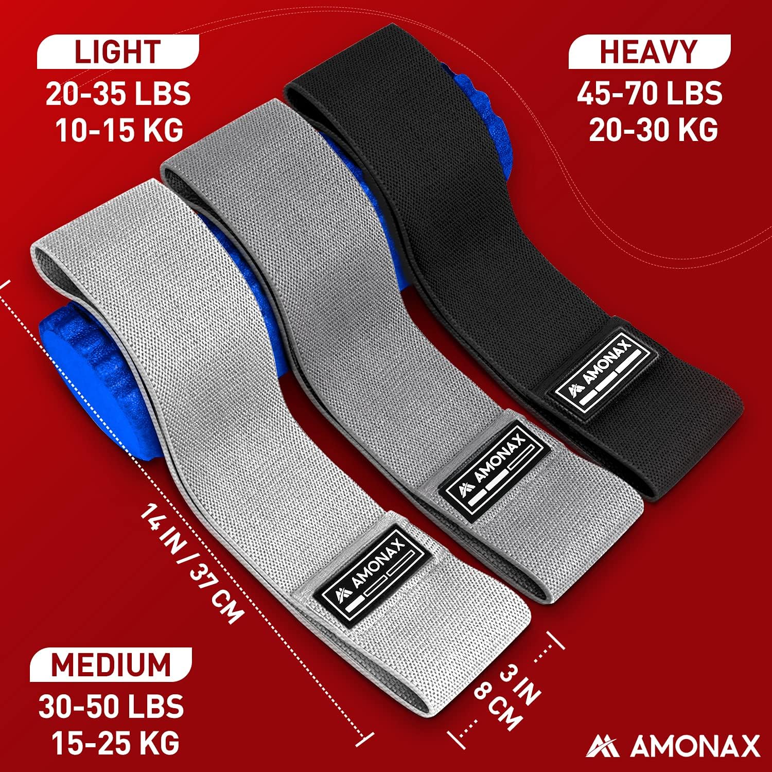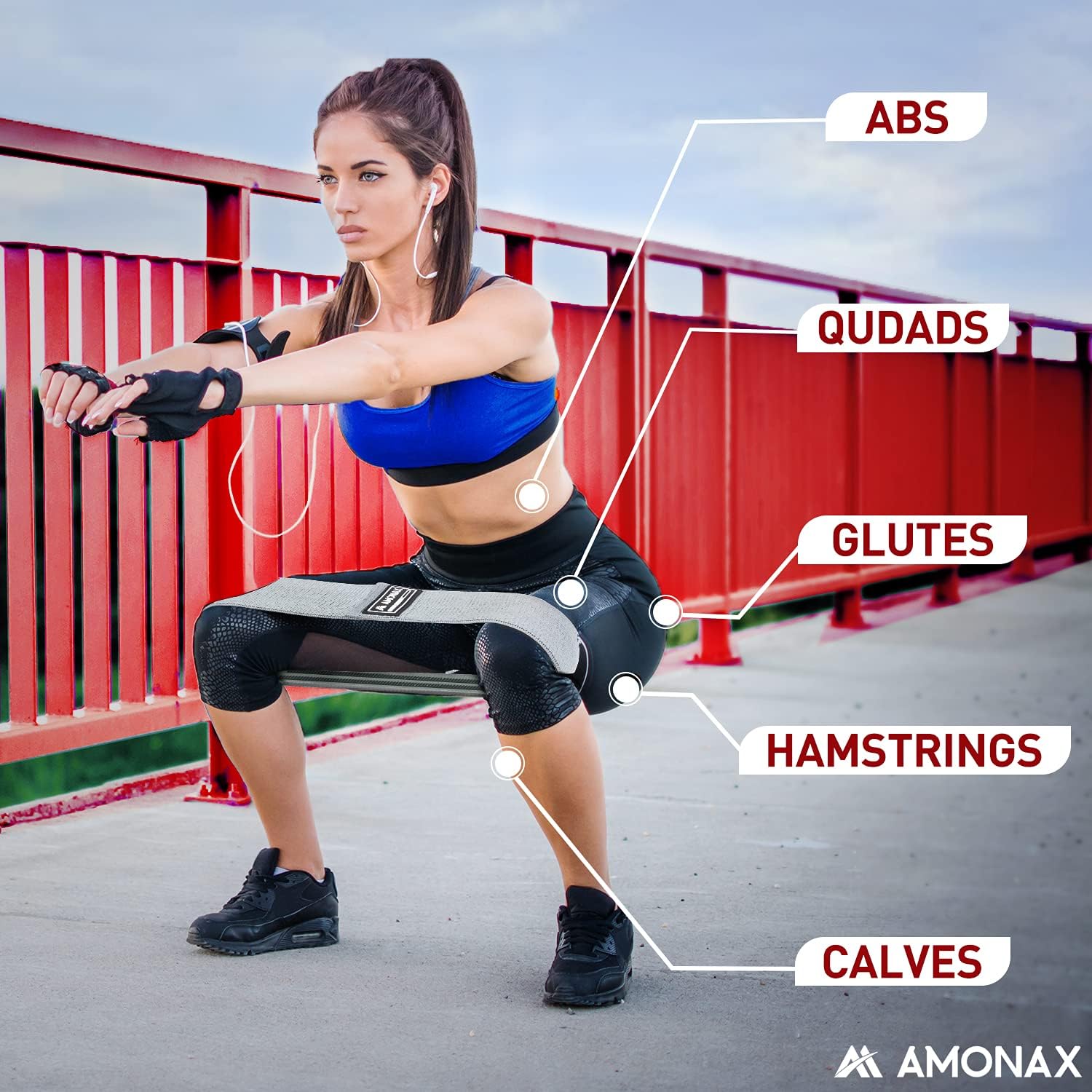 Amonax Fabric Resistance Bands Women, Glute Bands Female for Booty, Bands for Squat Exercise, Elastic Resistant Bands as Weight Loss Workout Equipment, Gym Fitness Accessories for Legs Butt Bum