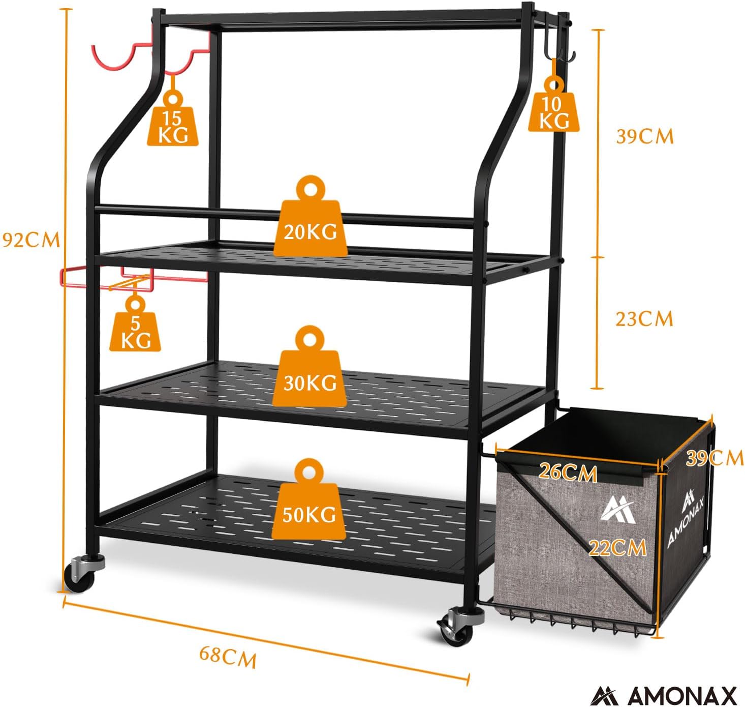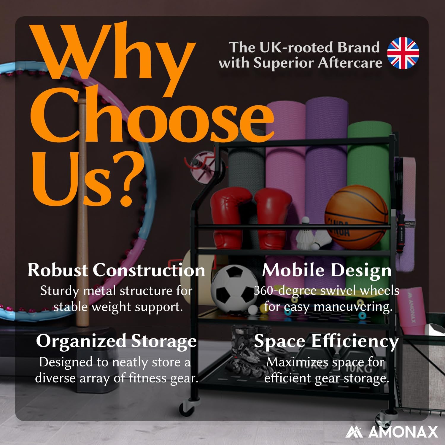 Space-Savvy Dimensions – Every inch of the Amonax storage rack is optimized for utility. Its dimensions are crafted to accommodate a diverse range of fitness equipment, from the broad bases of weights to the slender handles of workout gear. It stands as a testament to efficiency, ensuring every piece of equipment has a home, and your workout space remains unhindered.