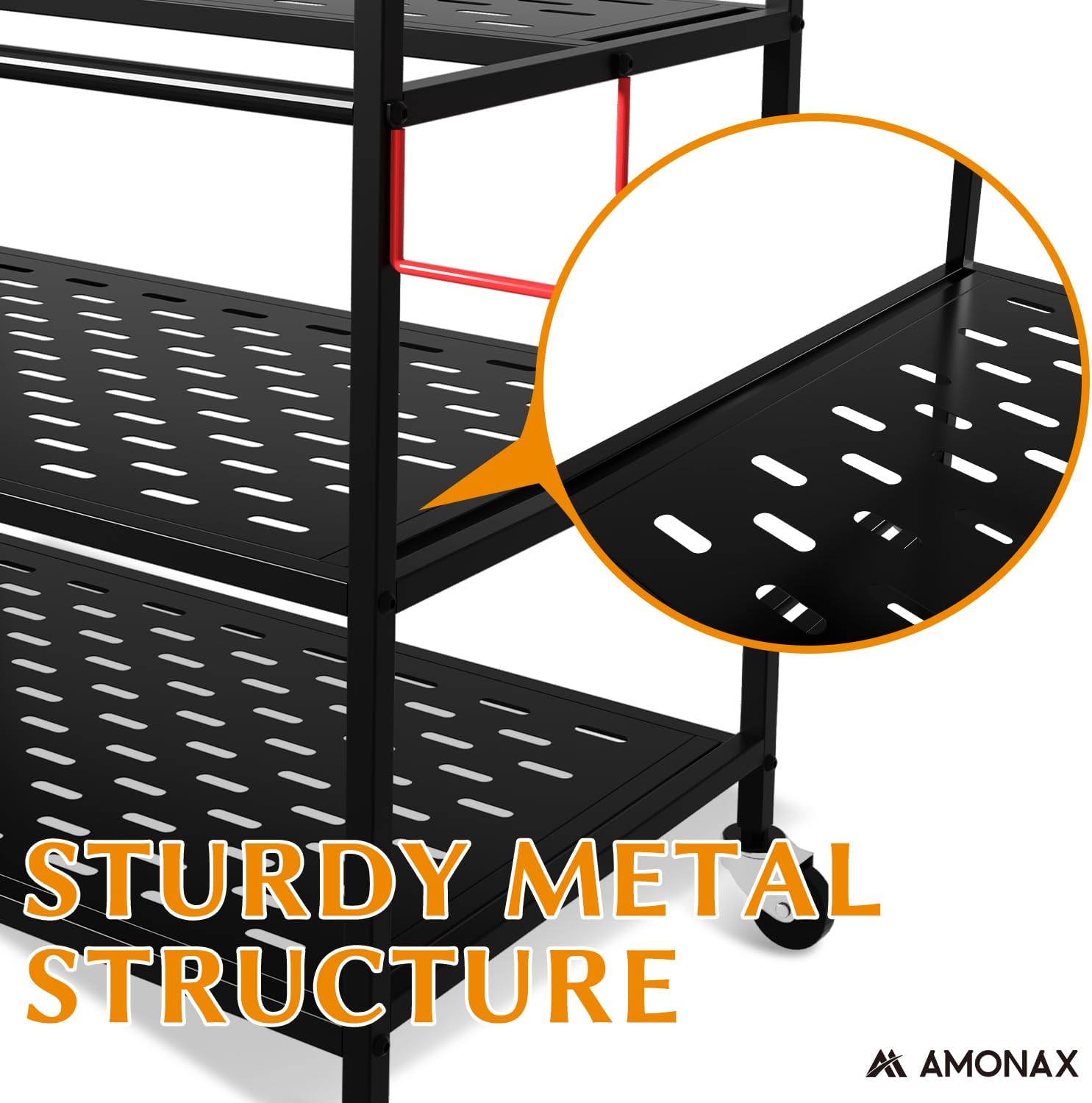 Robust Iron Build – Our storage dumbell rack stands out with its premium iron construction. The Amonax design prioritizes longevity and durability. The firm structure promises to remain steadfast, even when loaded with heavy equipment, ensuring your weights and gears remain securely placed without any unsettling wobbles.