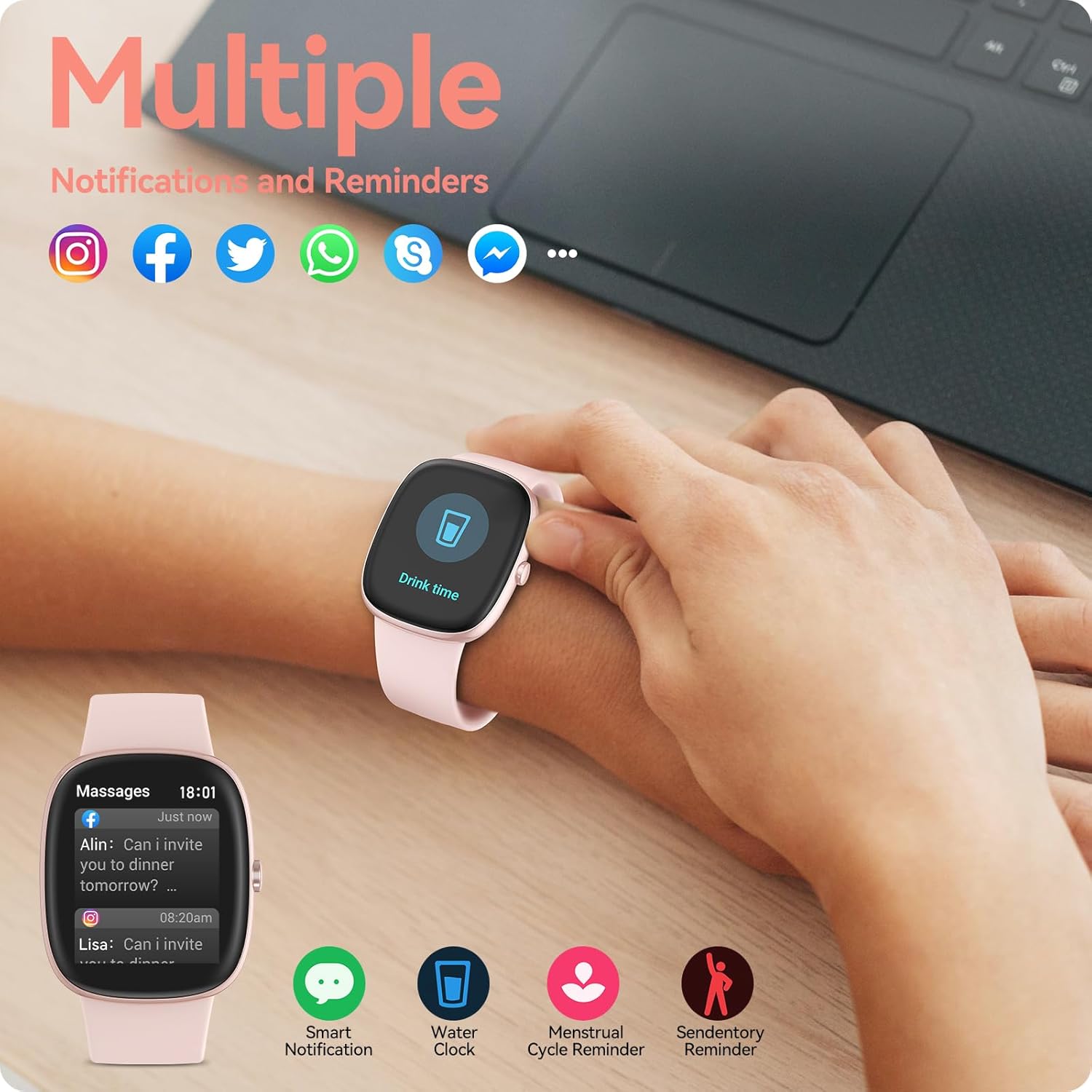 anyloop Smart Watch for Women Men,1.69″ HD Touchscreen Fitness Watch, Fitness Tracker with Step Counter, SpO2/Heart Rate Sleep Monitor, IP68 Waterproof Sport Smartwatch for Android iOS Pink