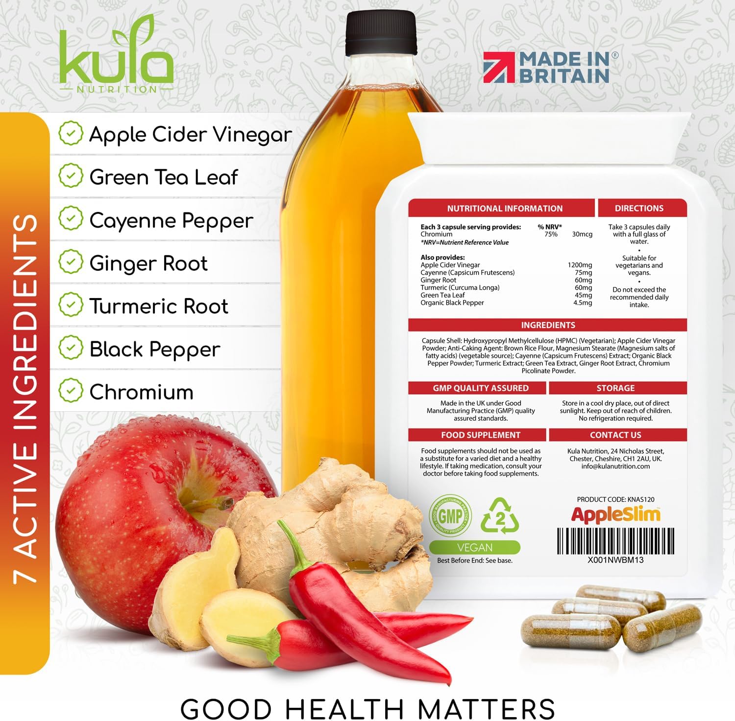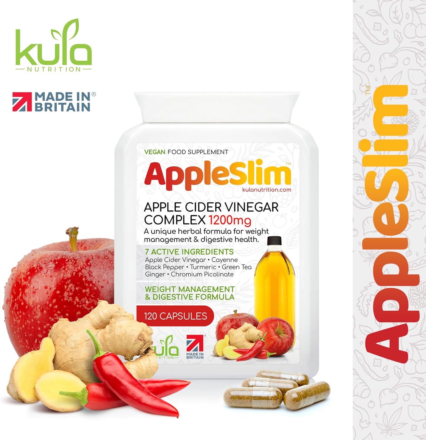 AppleSlim – Raw Unfiltered Apple Cider Vinegar Capsules Complex for Weight Management and Digestion – Green Tea, Ginger, Turmeric, Black Pepper and Chromium – Blood Sugar Support – 120 Vegan Tablets