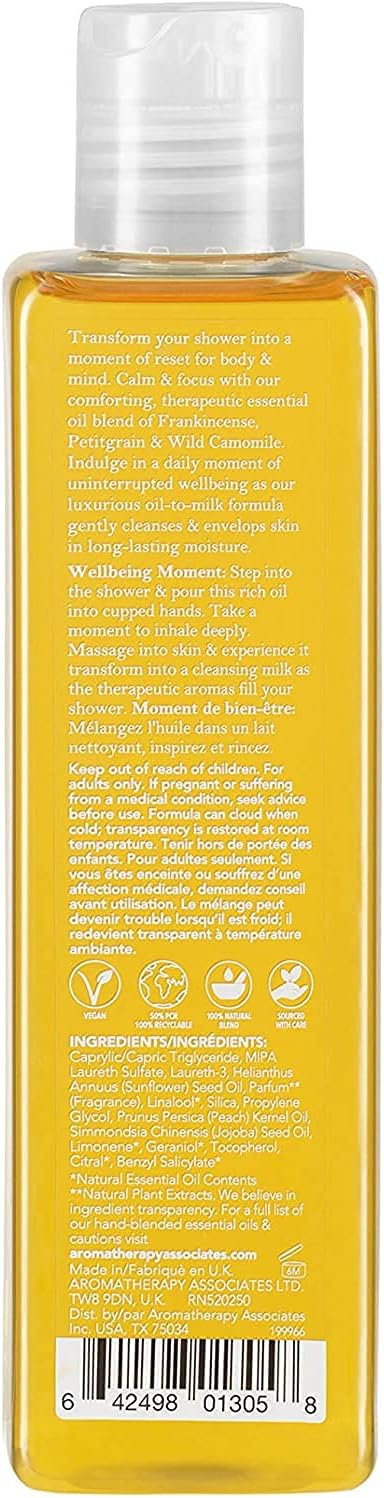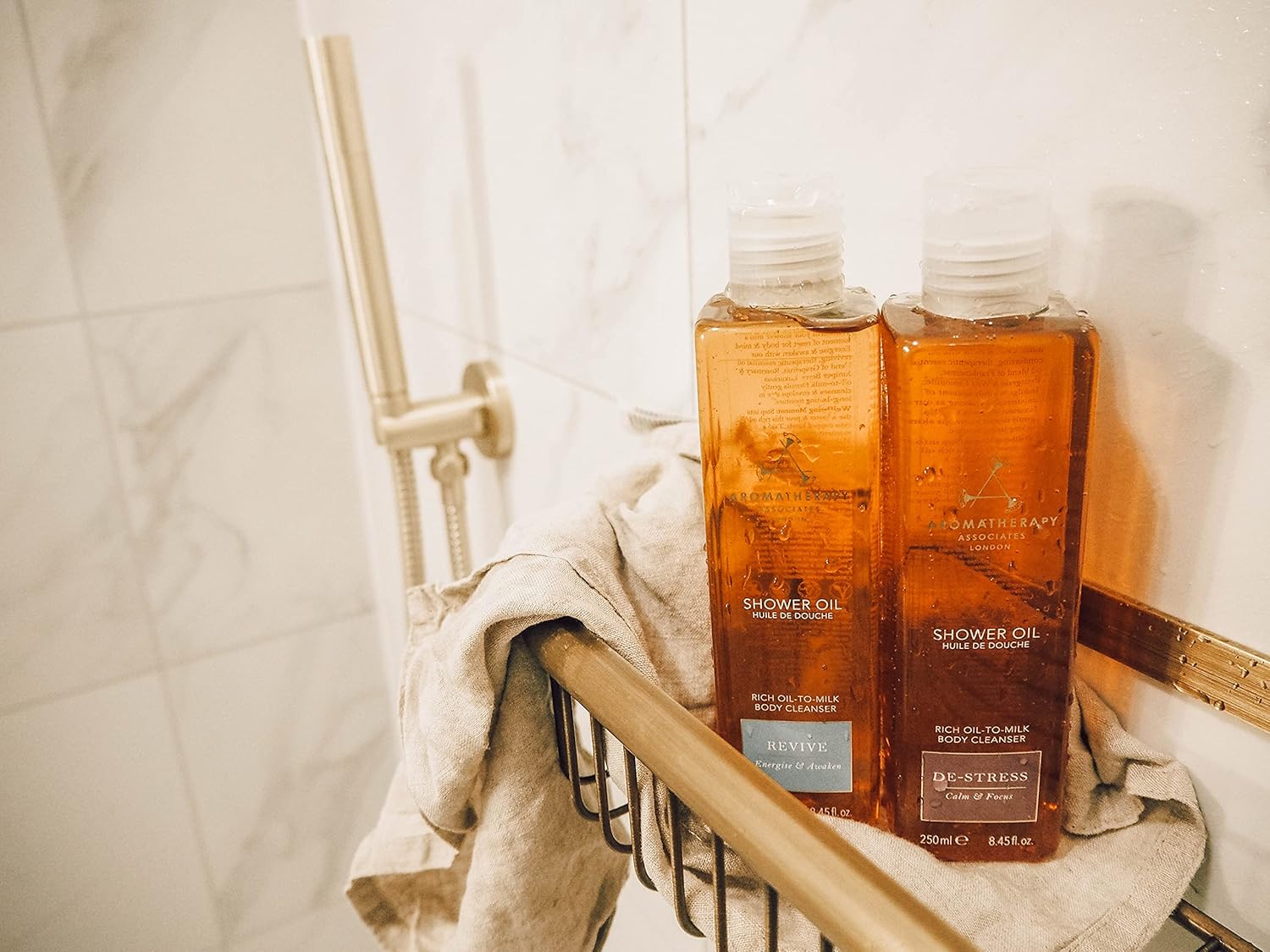 Aromatherapy Associates De-Stress Mind Shower Oil 250 ml. Calm & focus with our comforting, therapeutic essential oil blend of Frankincense, Petitgrain & Wild Camomile. Luxurious oil-to-milk formula