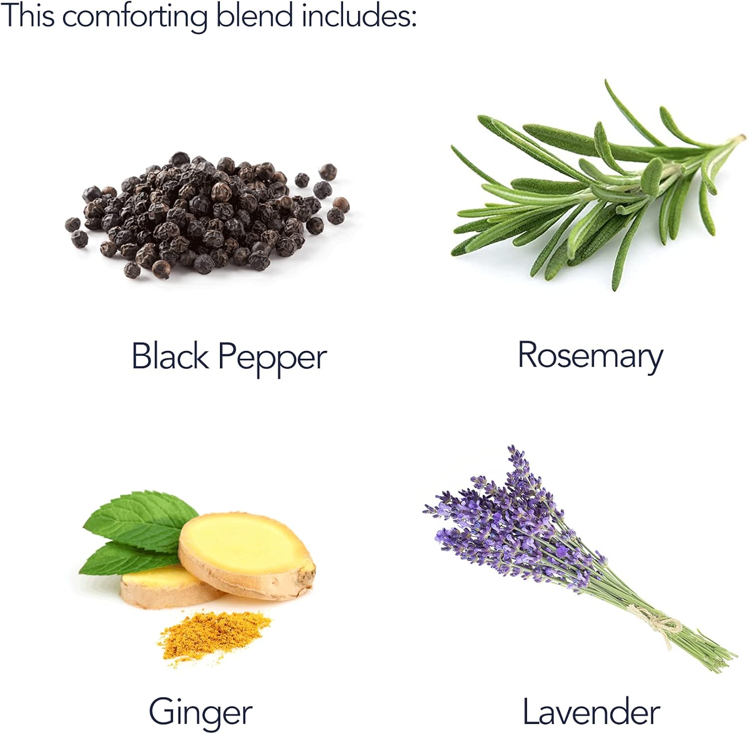 This blend stars soothing lavender and energising rosemary, while warming ginger & black pepper help you feel recovered.