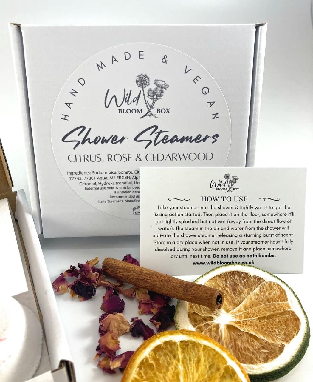Aromatherapy Shower Steamers, Wild Bloom Box, Vegan Gift, Handmade Shower Bombs, Shower Spa Experience, Cruelty Free, Essential Oils, Relaxation, Pamper, Handmade in The UK, Citrus, Rose, Cedar